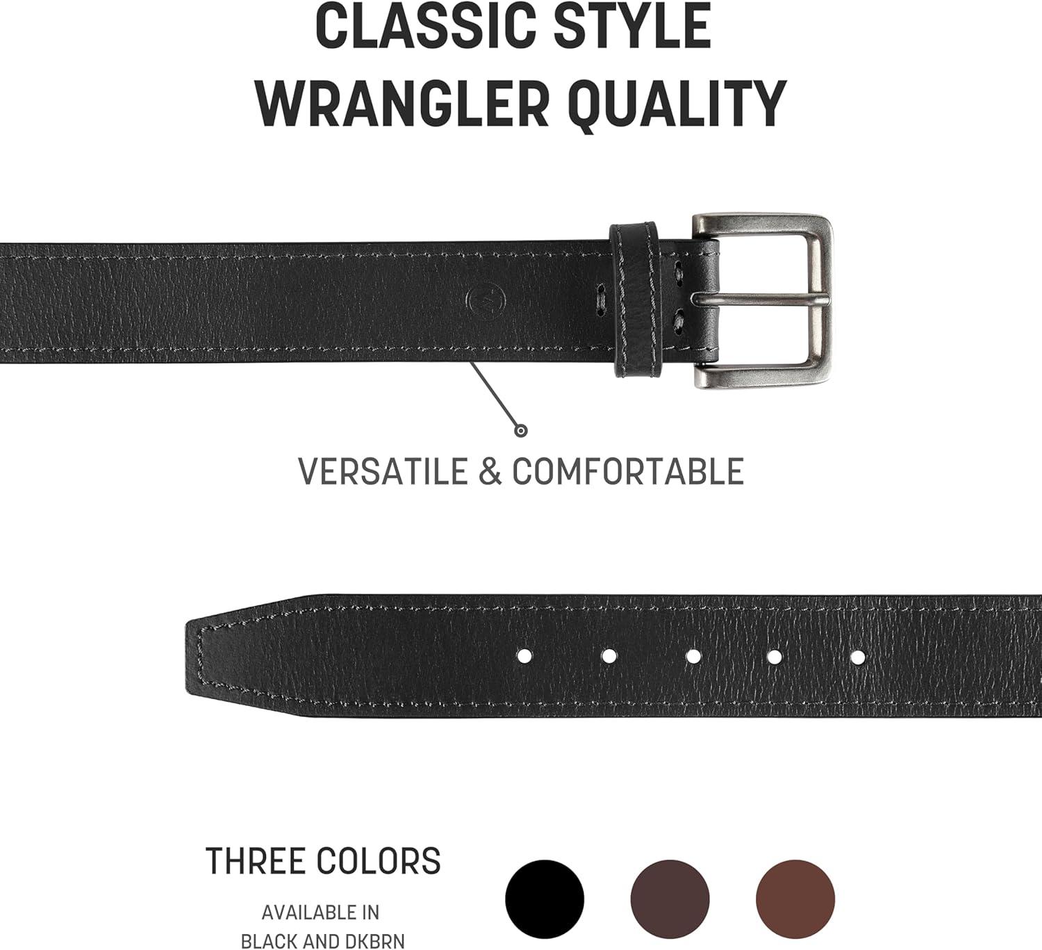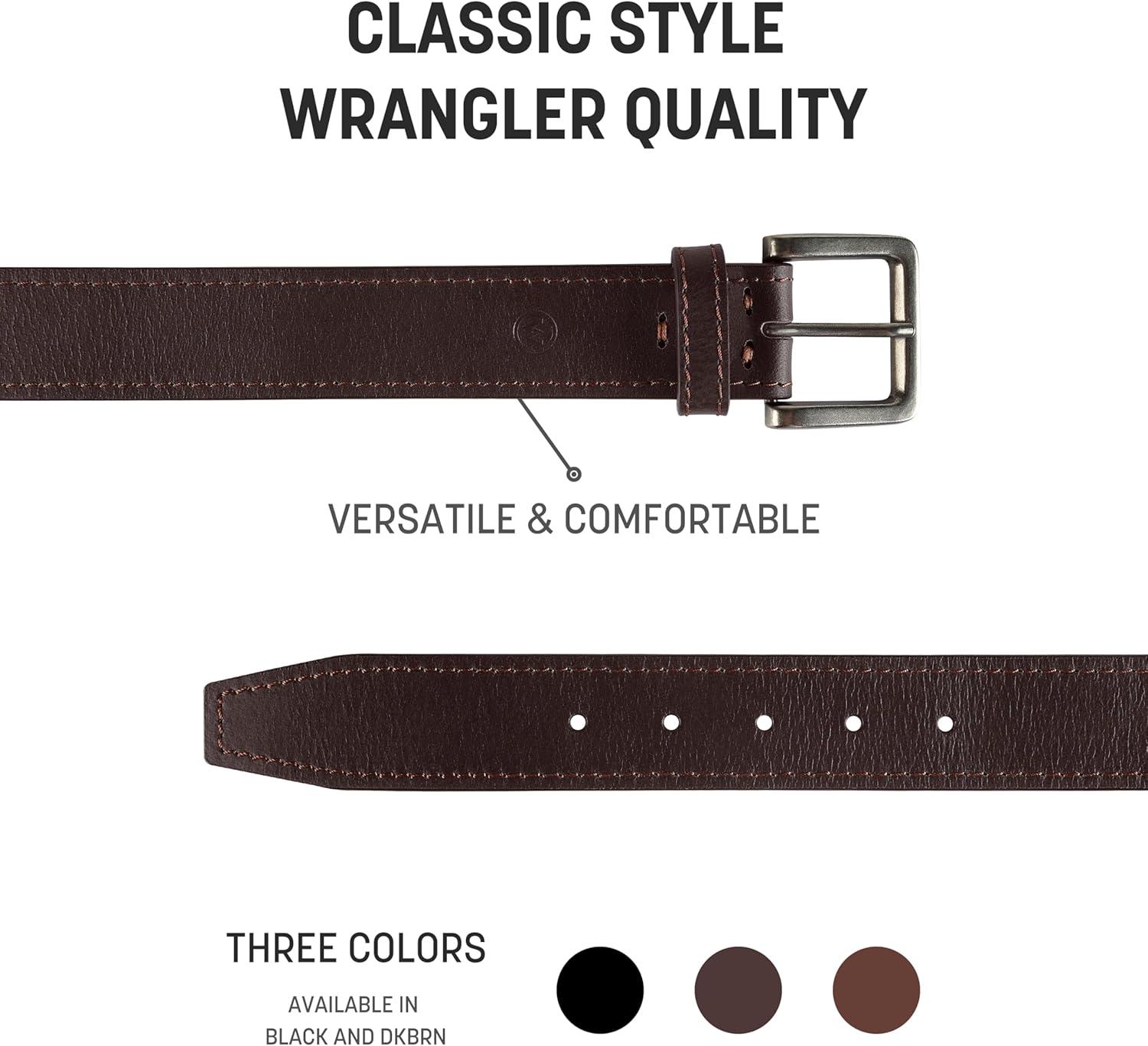 Wrangler Men’s Leather Belt, Country Casual Every Day Belt for Jeans(Black)