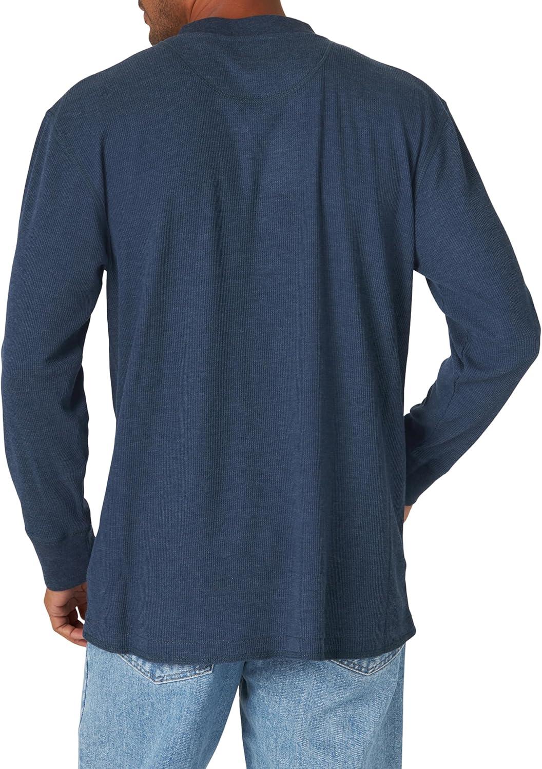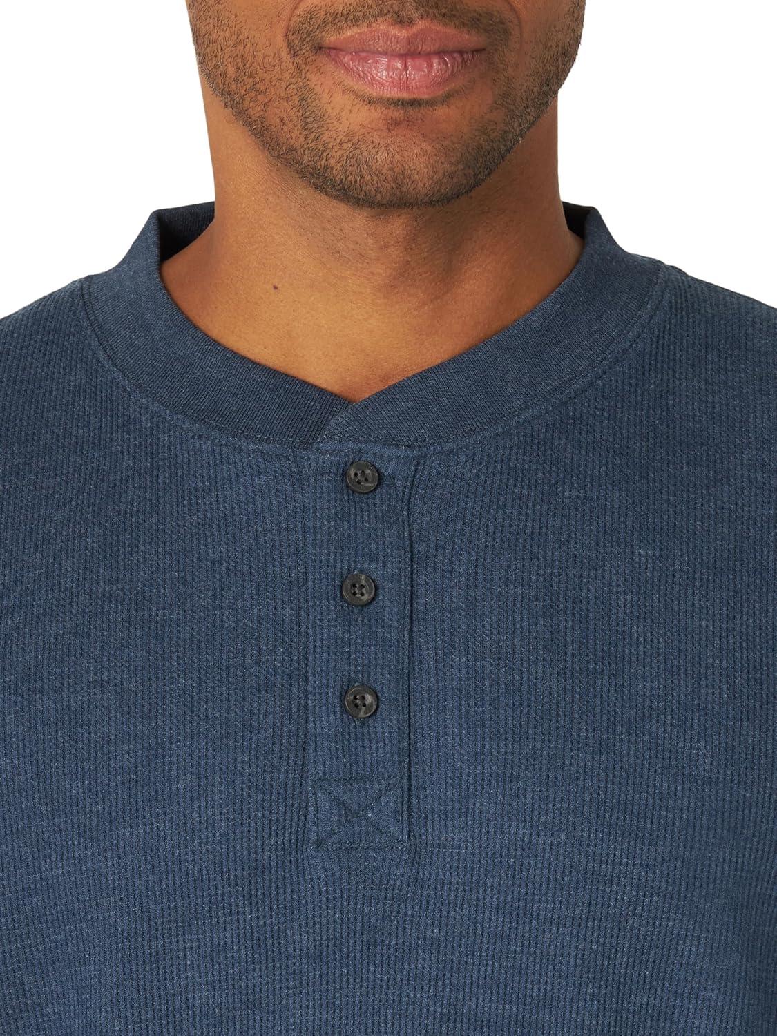 Wrangler Authentics Men’s Long Sleeve Waffle Henley(Dress Blue Heather)