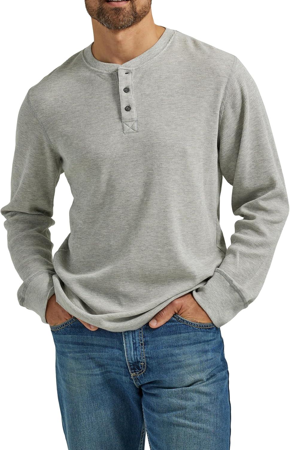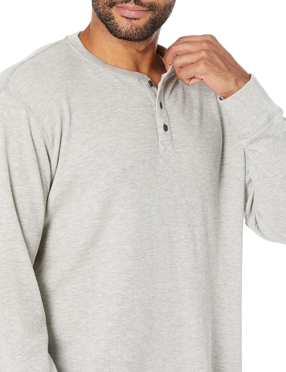 Wrangler Authentics Men’s Long Sleeve Waffle Henley(Light Heather Gray)