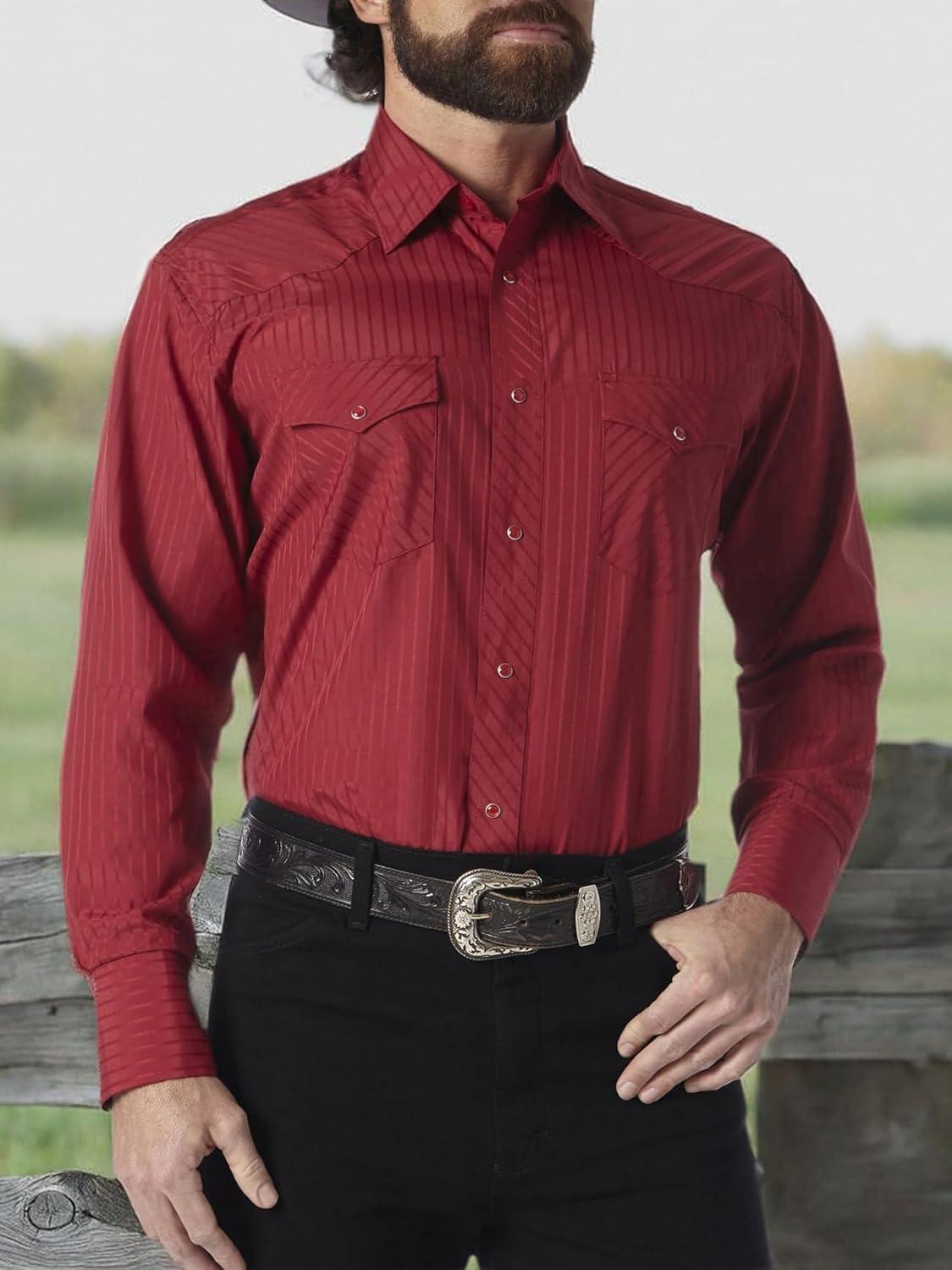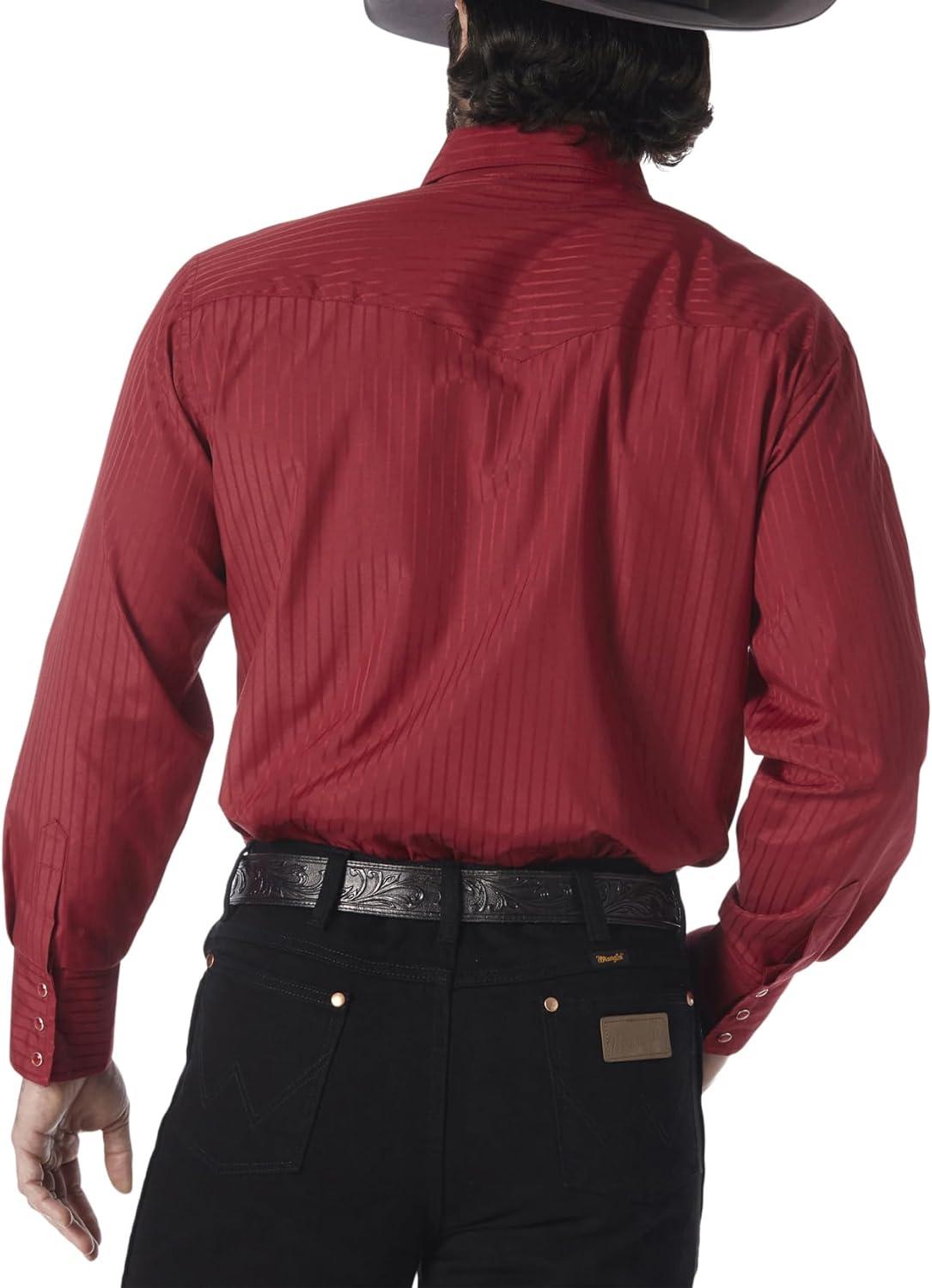 Wrangler Mens Sport Western Two Pocket Long Sleeve Snap Shirt(Wine)