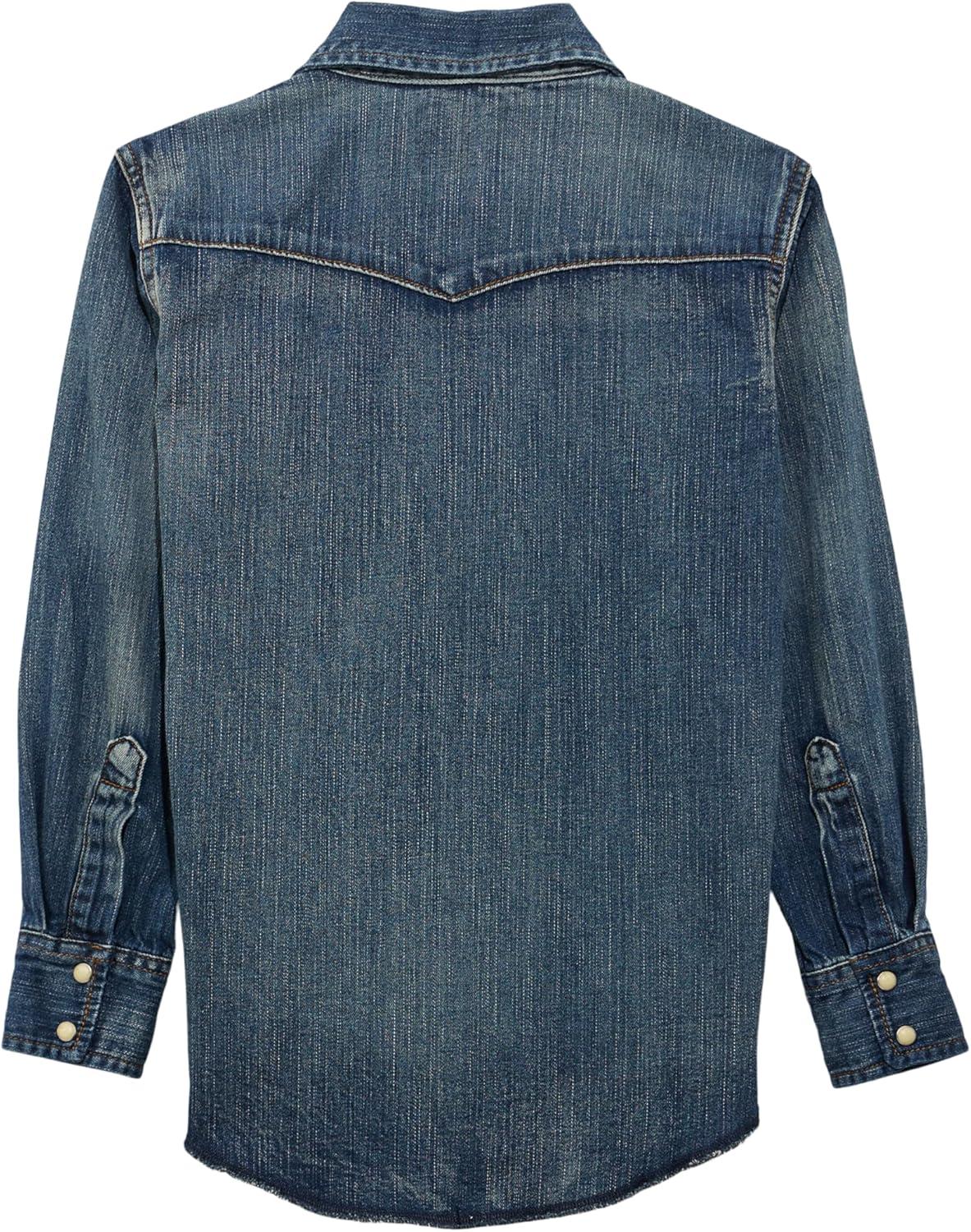 Wrangler Boy’s Long Sleeve White Snap Shirt(Stonewashed Indigo)