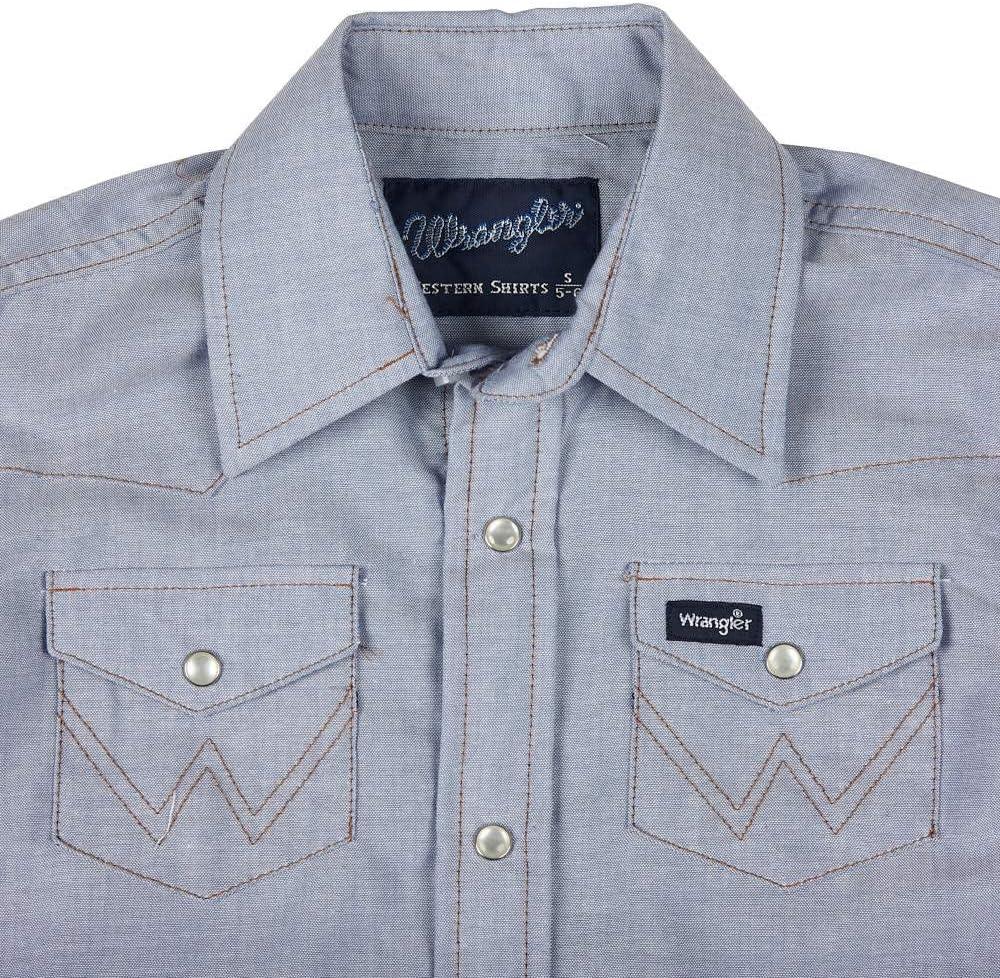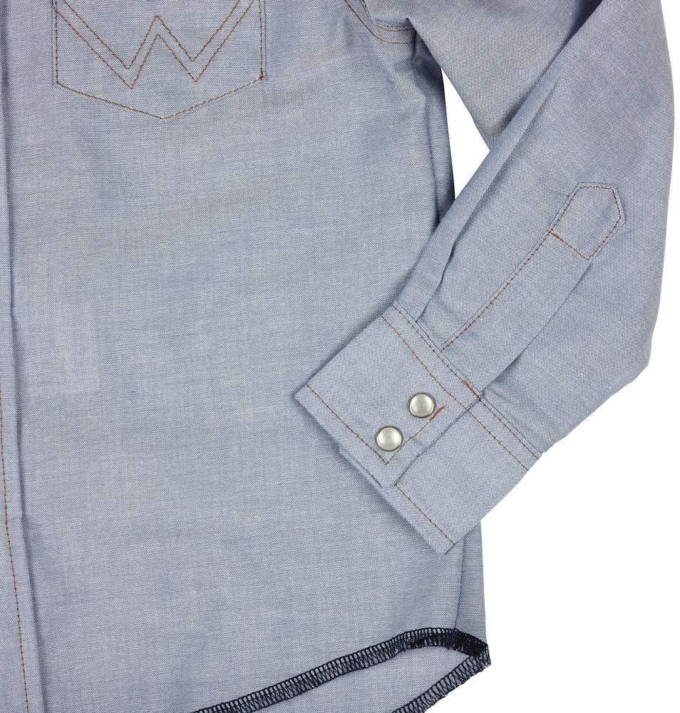 Wrangler Boy’s Long Sleeve White Snap Shirt(Blue Chambray)