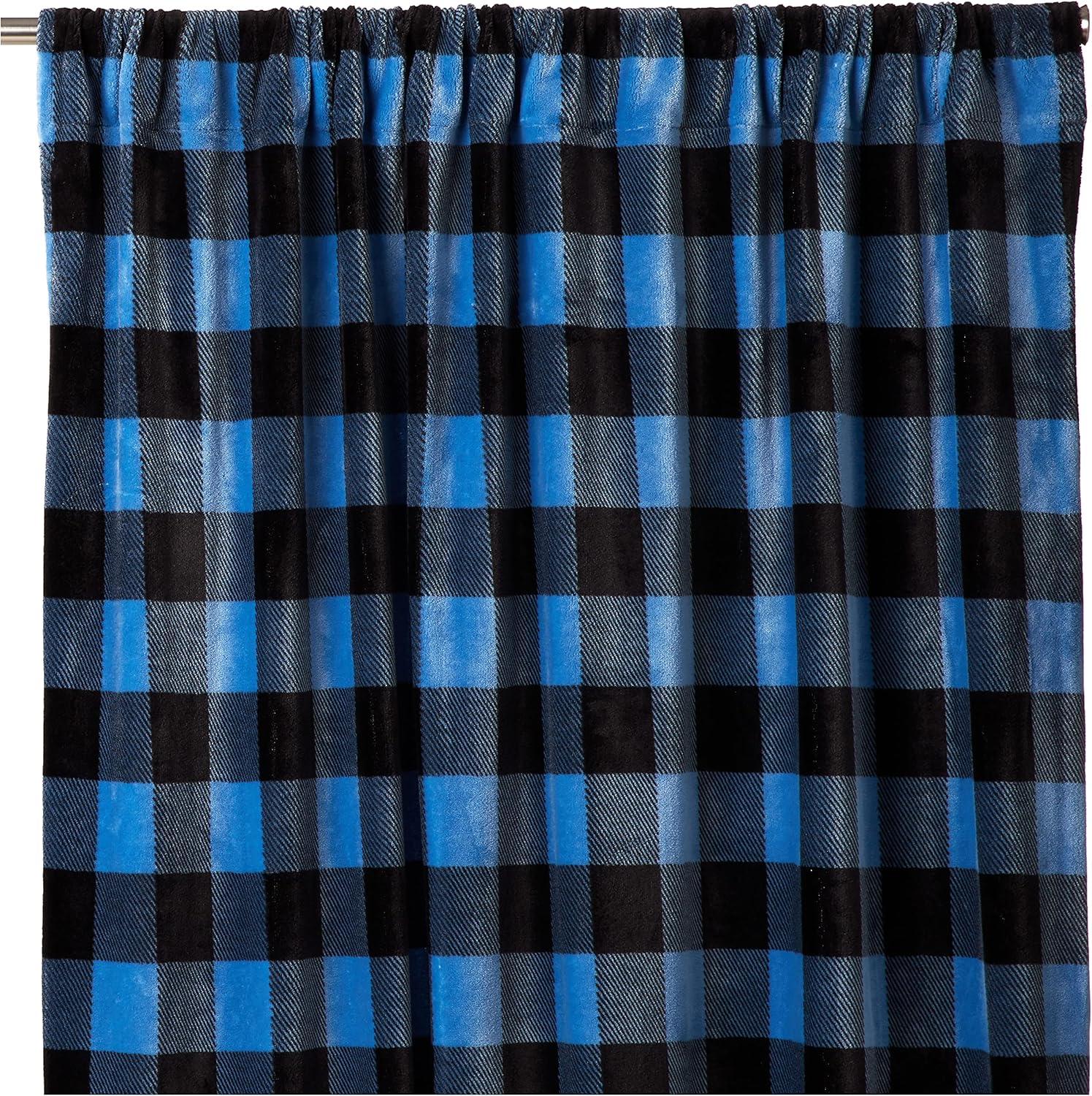 CARSTENS, INC. Plush Fleece Curtain Panel Set, Wrangler Western Collection, 2 Panels (54″ x 84″ Each), Blue Buffalo Plaid(Blue Buffalo Plaid)