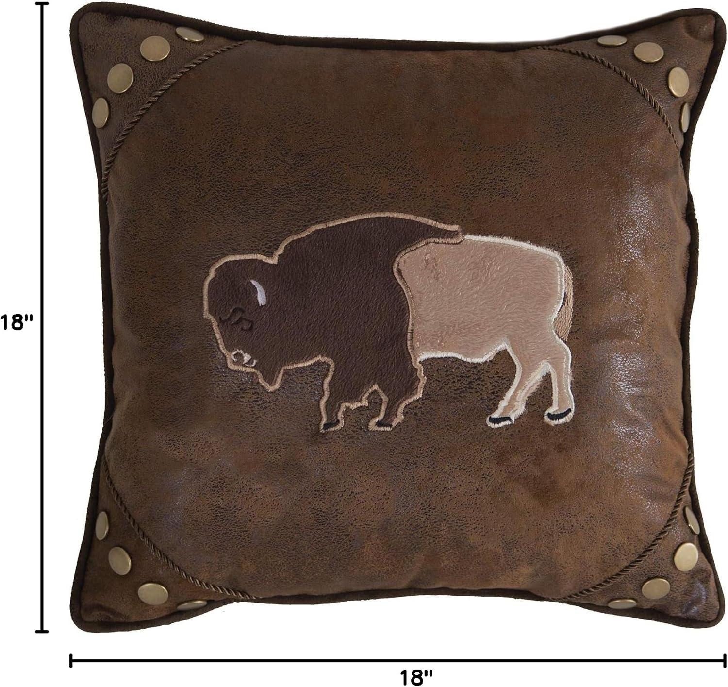 Carstens, Inc Carstens Wrangler Faux Leather Buffalo 18×18 Throw Pillow, Brown