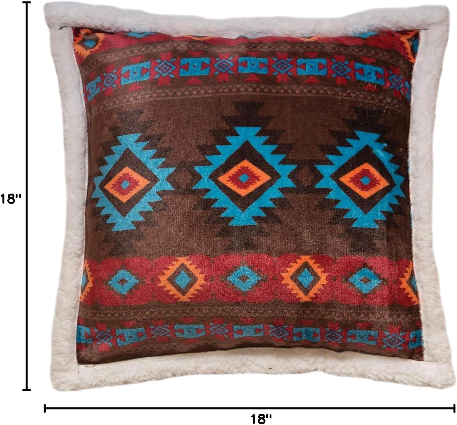 Carstens, Inc Carstens Wrangler Southwest Horizon Rustic Sherpa Fleece 18×18 Throw Pillow, Brown