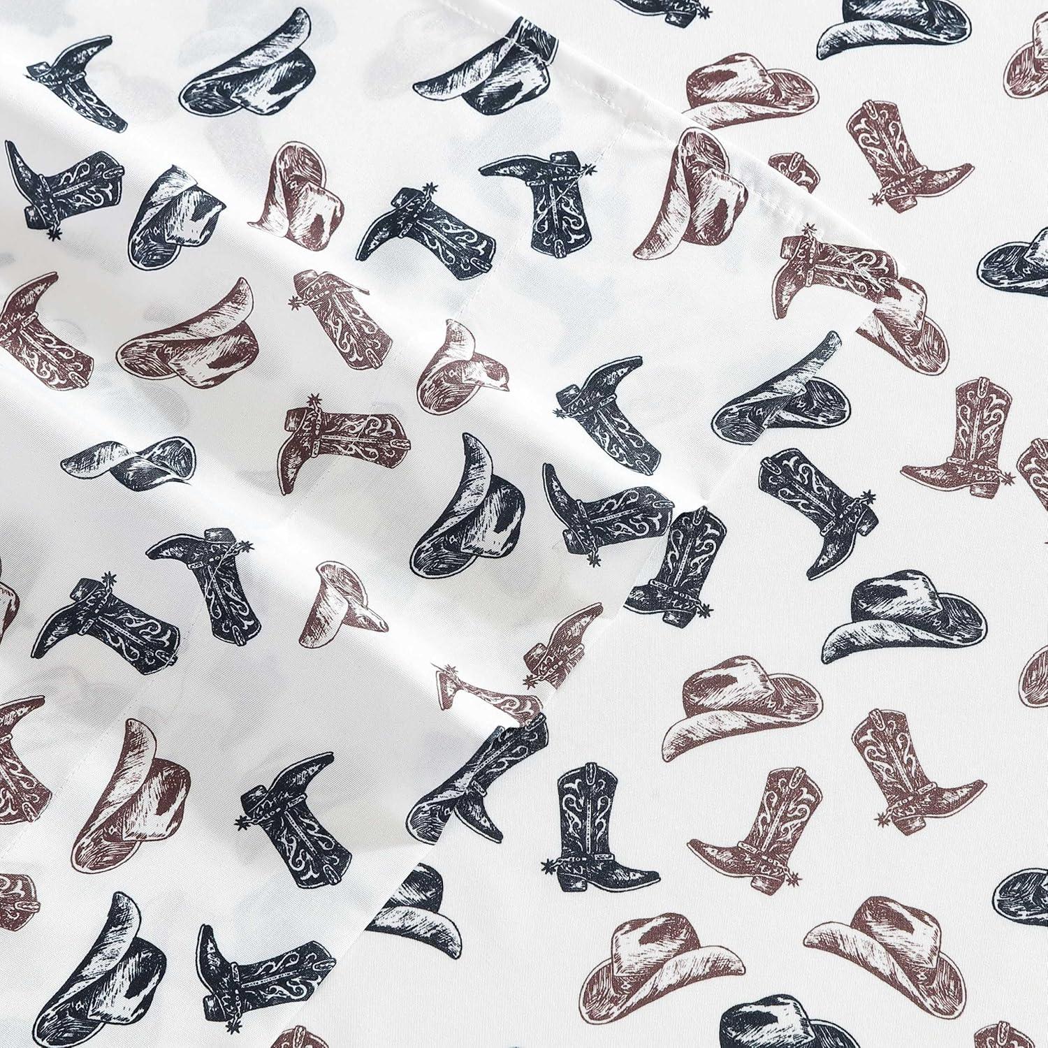 Wrangler – Twin Size Sheet Set, Ultra-Soft & Wrinkle-Resistant Bedding for Year Round Comfort, Deep Pockets, Bed Sheets with Matching Fitted Sheet & Pillowcase (Cowboy Pinstripe Blue)(Boots N Hats Brown)