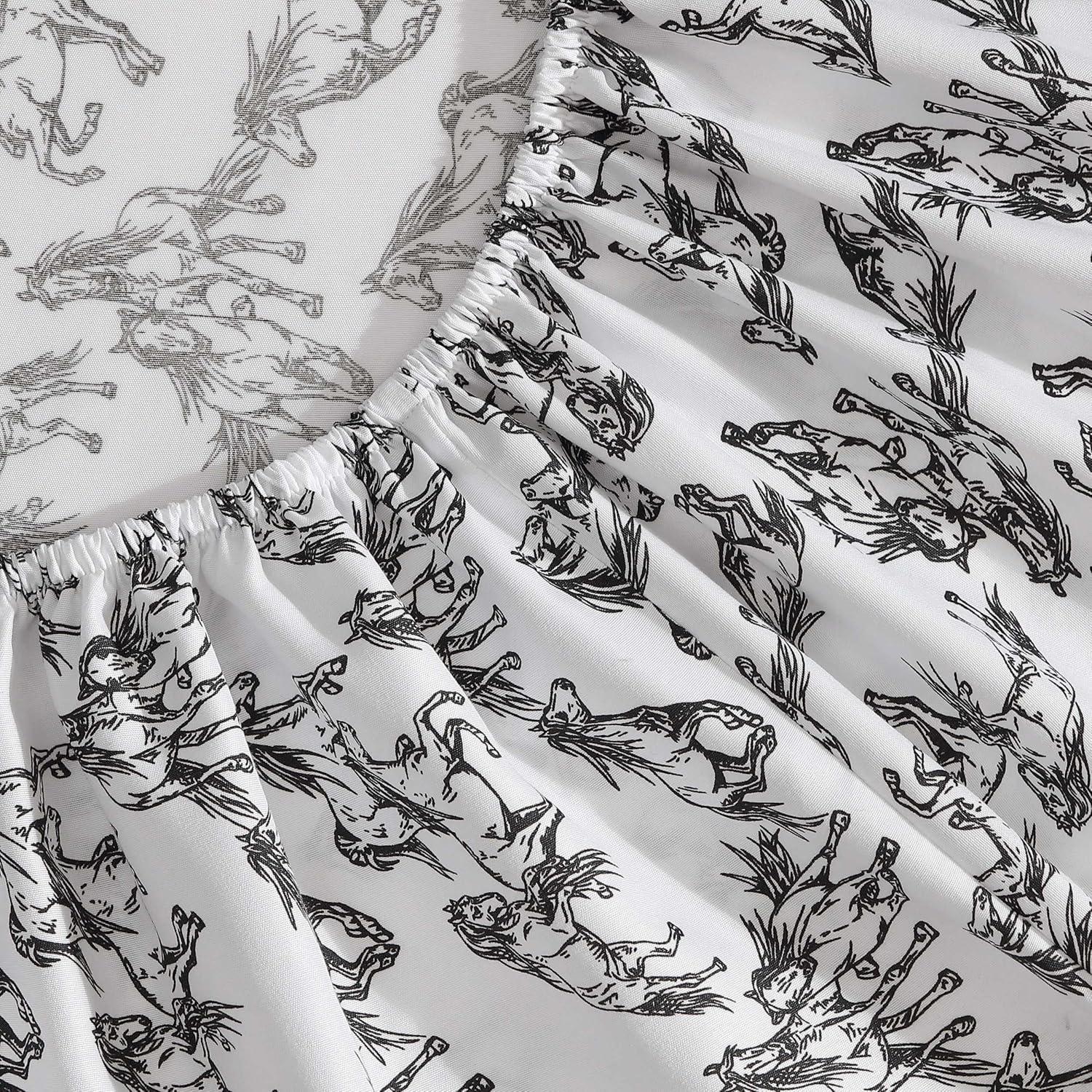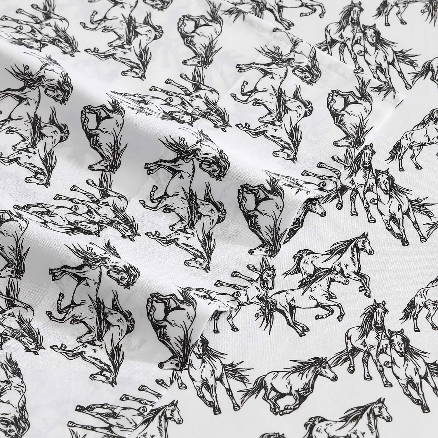 Wrangler – Twin Size Sheet Set, Ultra-Soft & Wrinkle-Resistant Bedding for Year Round Comfort, Deep Pockets, Bed Sheets with Matching Fitted Sheet & Pillowcase (Cowboy Pinstripe Blue)(Mustangs Black)