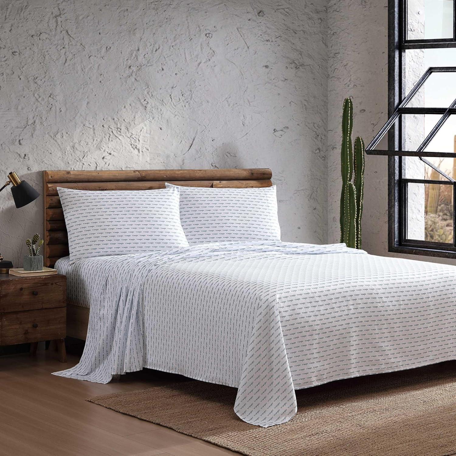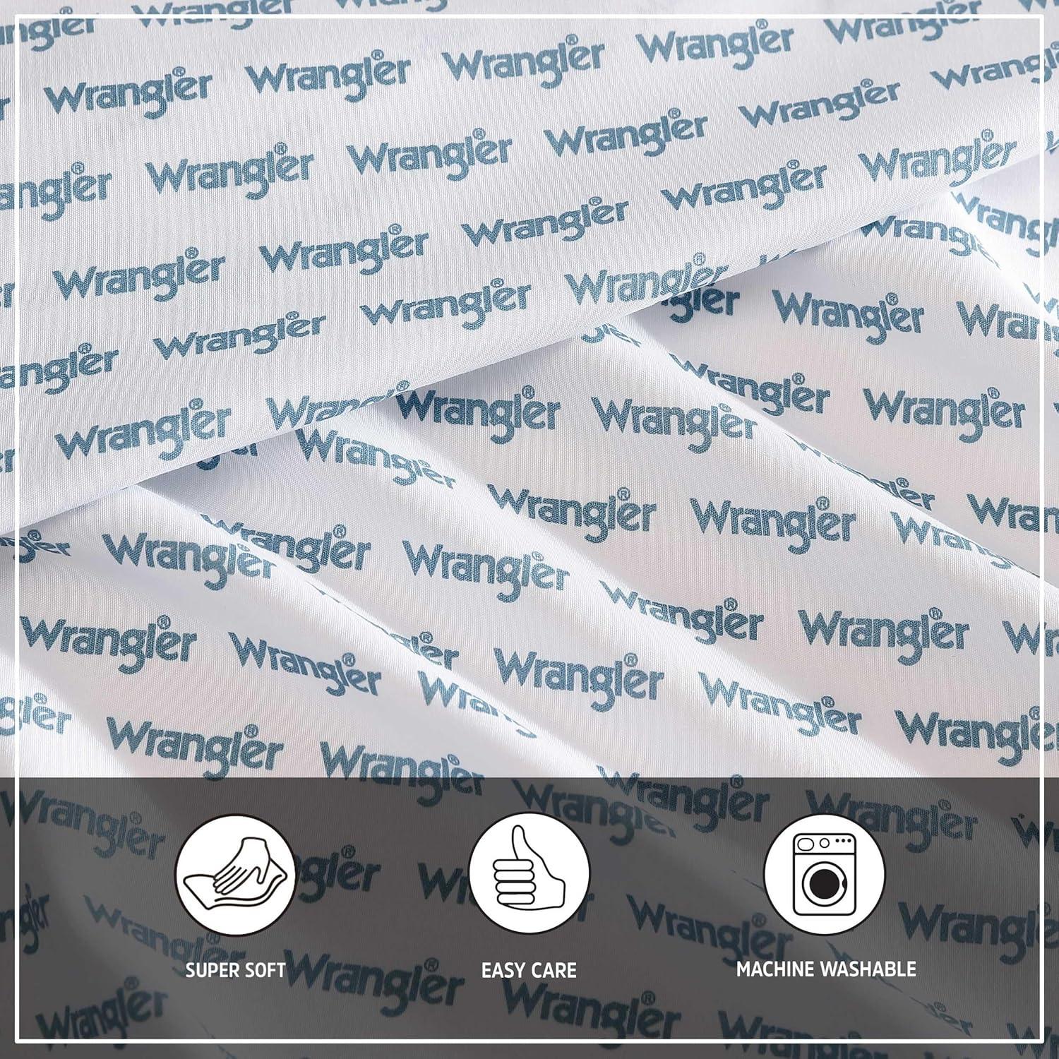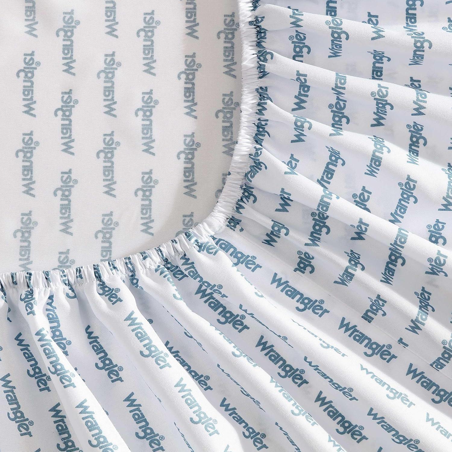 Wrangler – Twin Size Sheet Set, Ultra-Soft & Wrinkle-Resistant Bedding for Year Round Comfort, Deep Pockets, Bed Sheets with Matching Fitted Sheet & Pillowcase (Cowboy Pinstripe Blue)(Stamped Logo Blue)