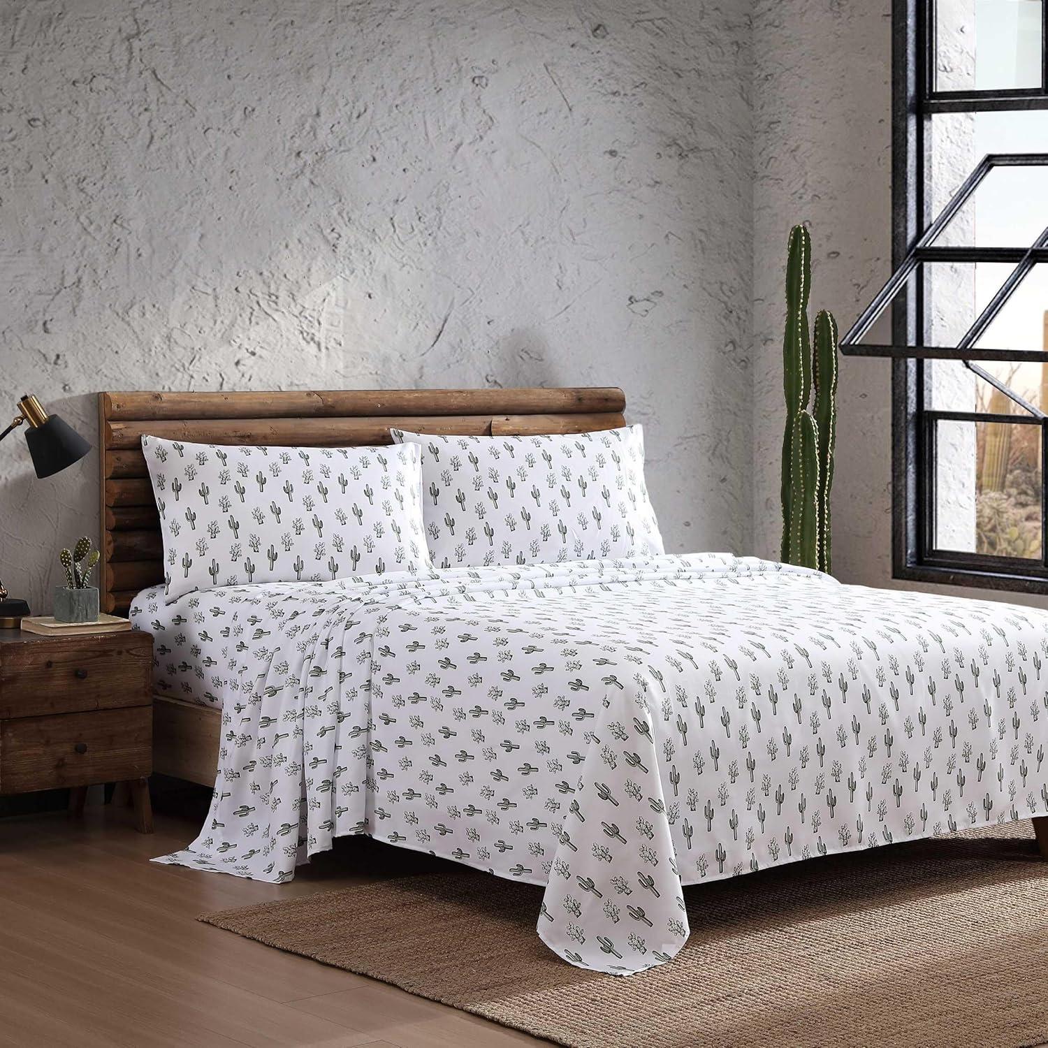 Wrangler – Twin Size Sheet Set, Ultra-Soft & Wrinkle-Resistant Bedding for Year Round Comfort, Deep Pockets, Bed Sheets with Matching Fitted Sheet & Pillowcase (Cowboy Pinstripe Blue)(Cacti Green)