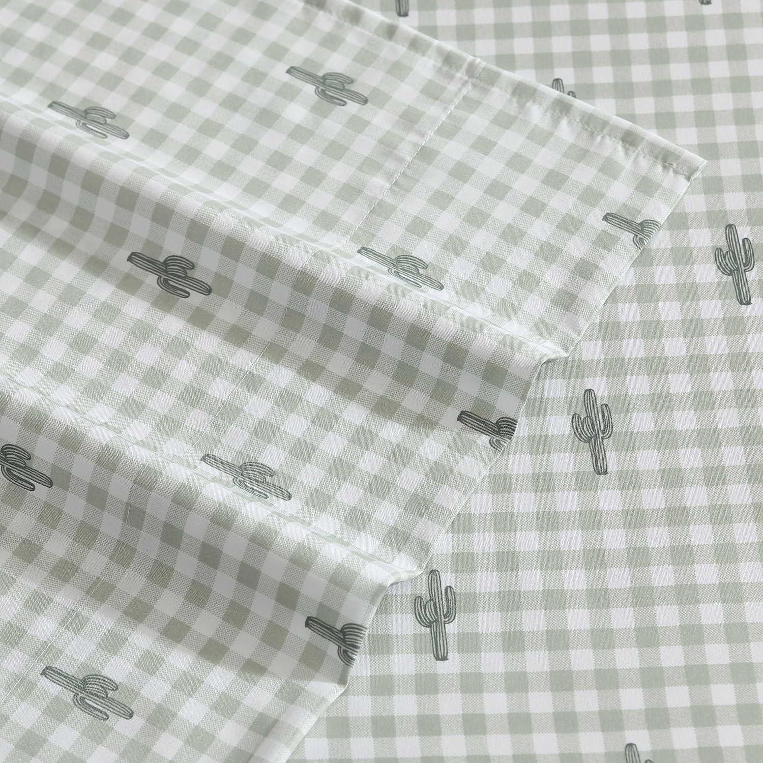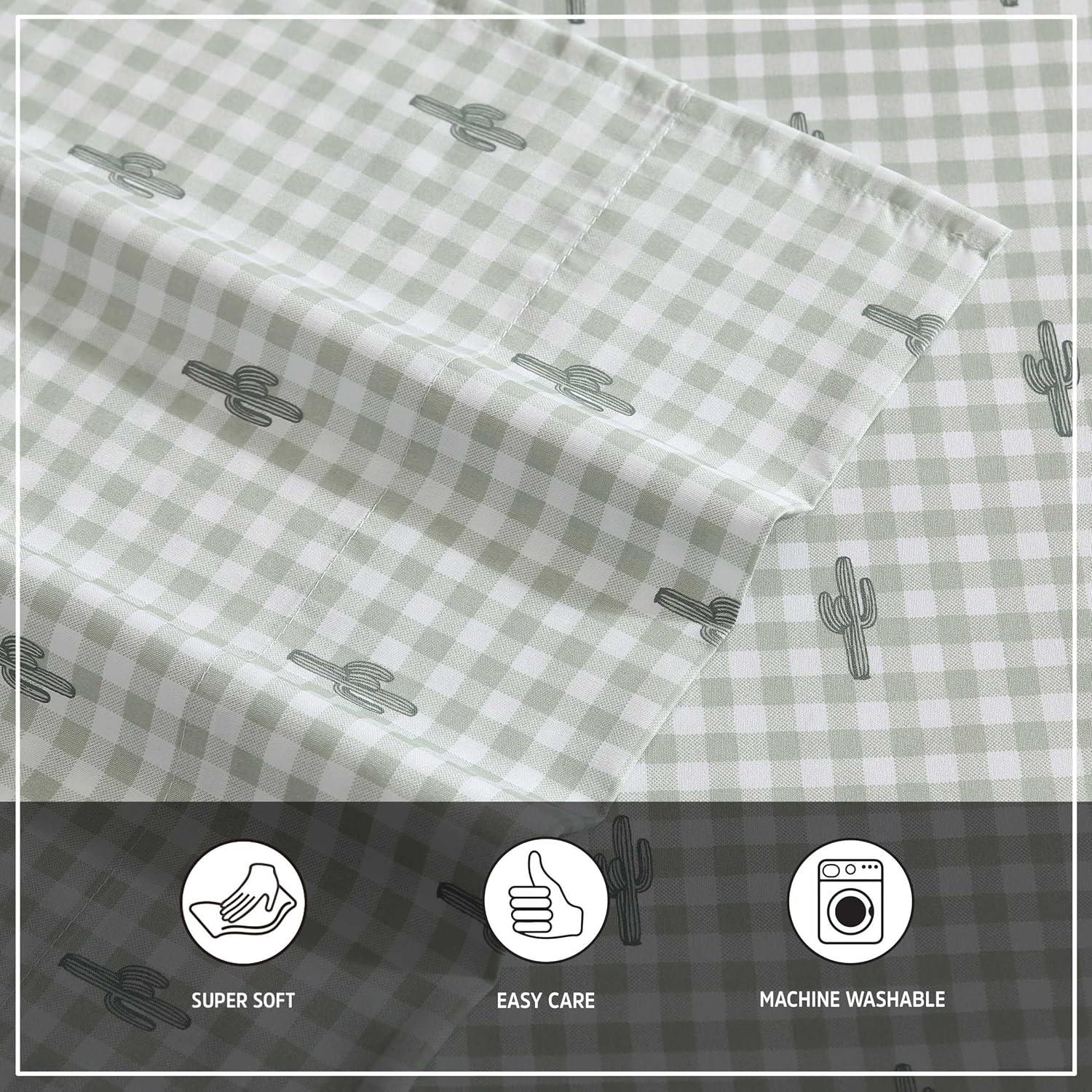 Wrangler – Twin Size Sheet Set, Ultra-Soft & Wrinkle-Resistant Bedding for Year Round Comfort, Deep Pockets, Bed Sheets with Matching Fitted Sheet & Pillowcase (Cowboy Pinstripe Blue)(Cactus Gingham Green)