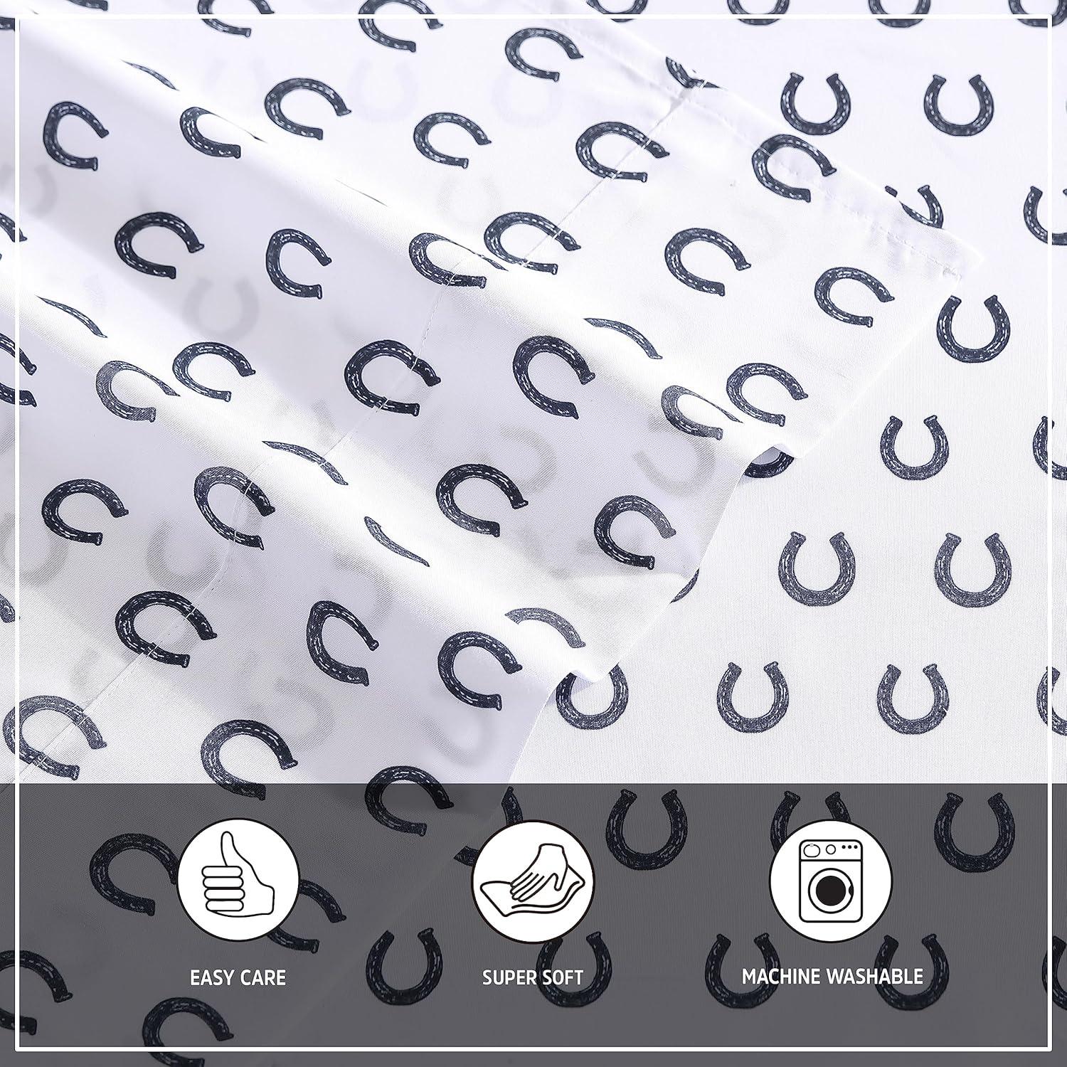 Wrangler – Twin Size Sheet Set, Ultra-Soft & Wrinkle-Resistant Bedding for Year Round Comfort, Deep Pockets, Bed Sheets with Matching Fitted Sheet & Pillowcase (Cowboy Pinstripe Blue)(Horseshoe Blue)