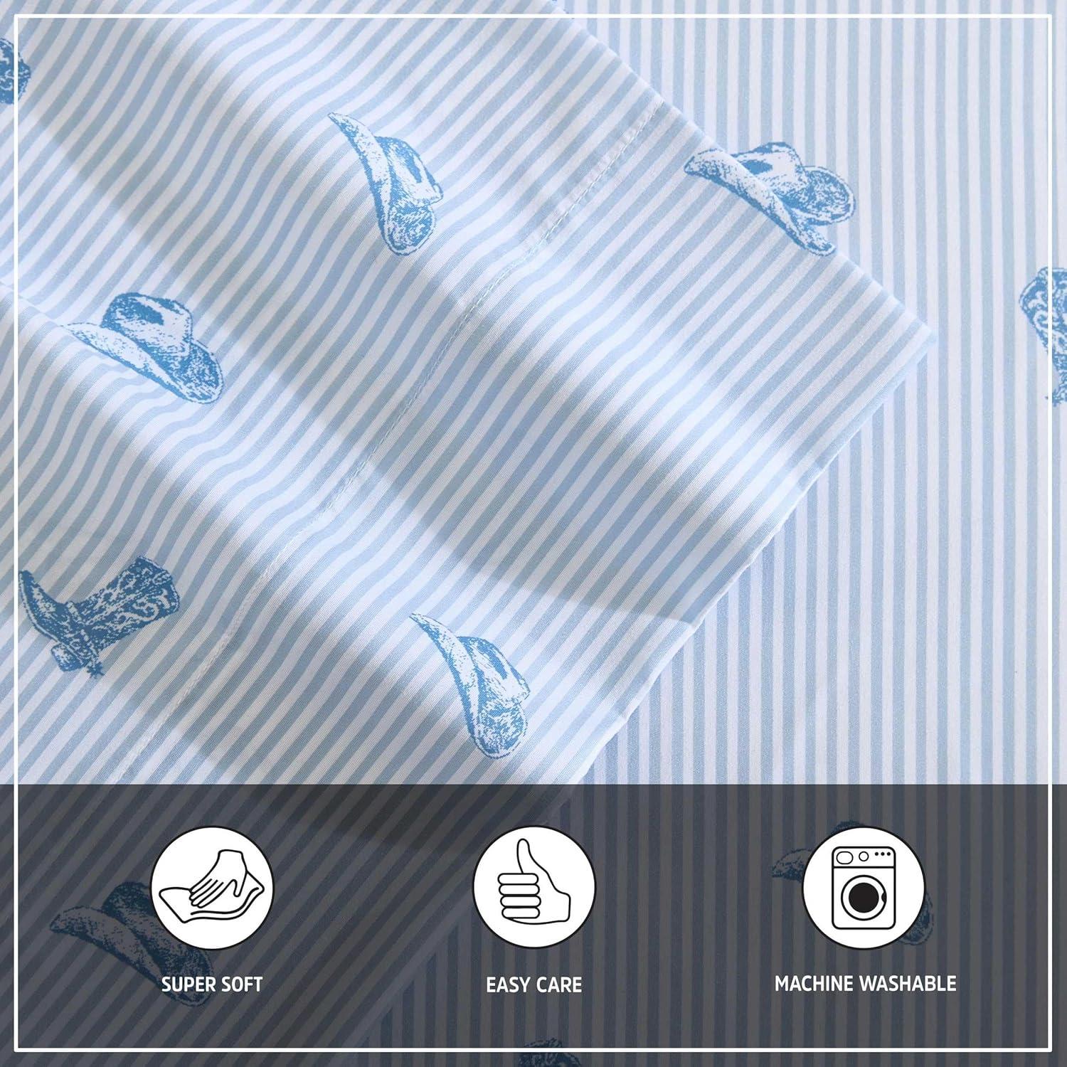 Wrangler – Twin Size Sheet Set, Ultra-Soft & Wrinkle-Resistant Bedding for Year Round Comfort, Deep Pockets, Bed Sheets with Matching Fitted Sheet & Pillowcase (Cowboy Pinstripe Blue)(Boots N Hats Black)