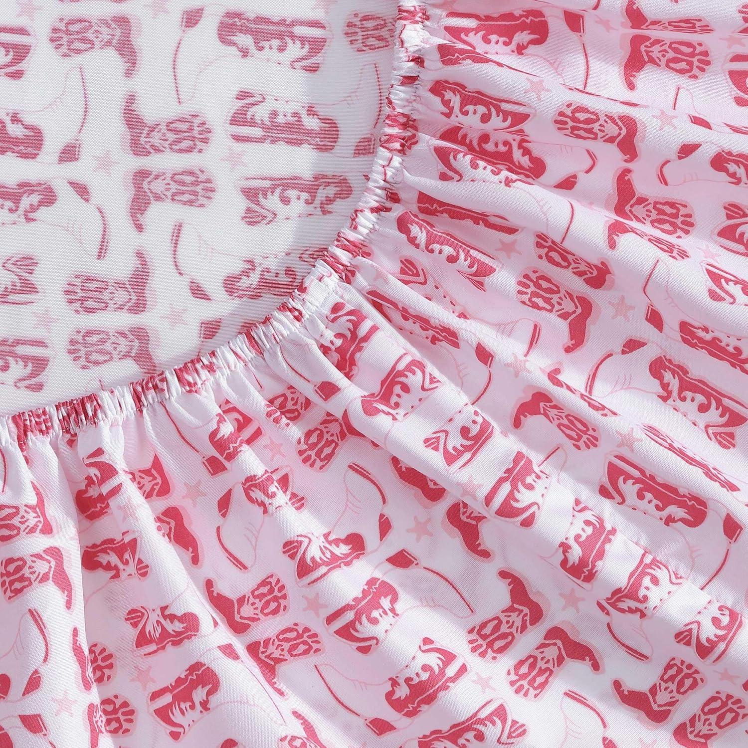 Wrangler – Twin Size Sheet Set, Ultra-Soft & Wrinkle-Resistant Bedding for Year Round Comfort, Deep Pockets, Bed Sheets with Matching Fitted Sheet & Pillowcase (Cowboy Pinstripe Blue)(Knockin Boots Pink)