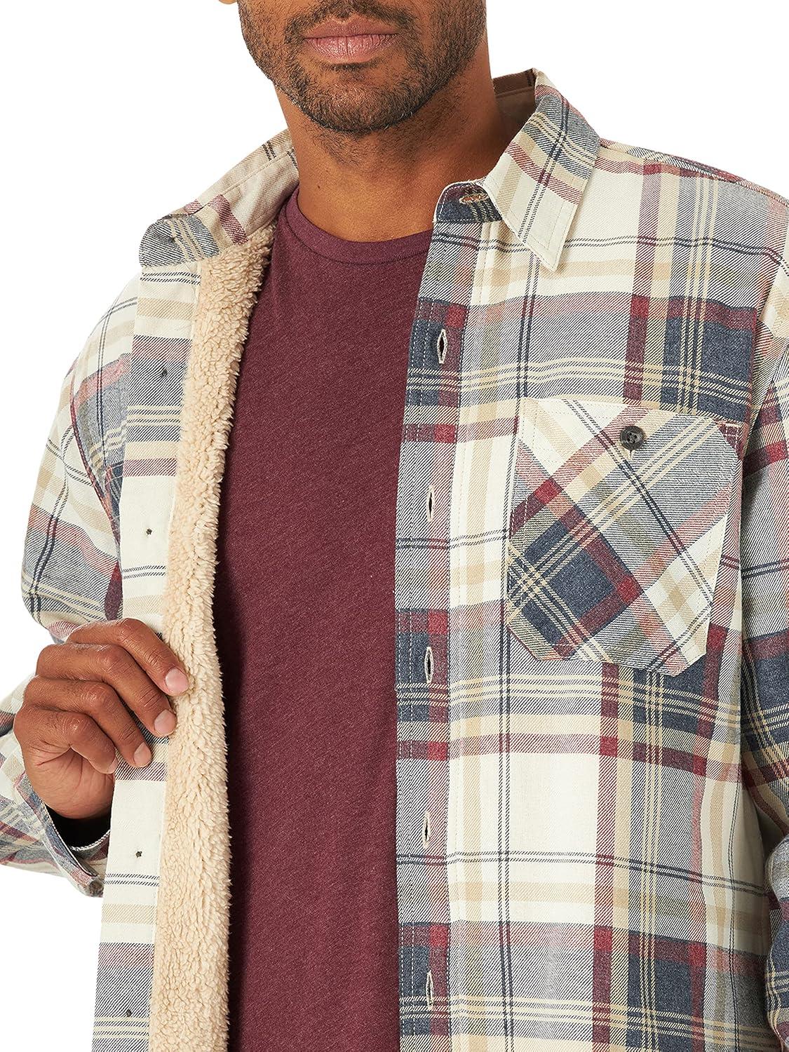 Wrangler Authentics Men’s Long Sleeve Sherpa Lined Shirt Jacket(Red Buffalo)