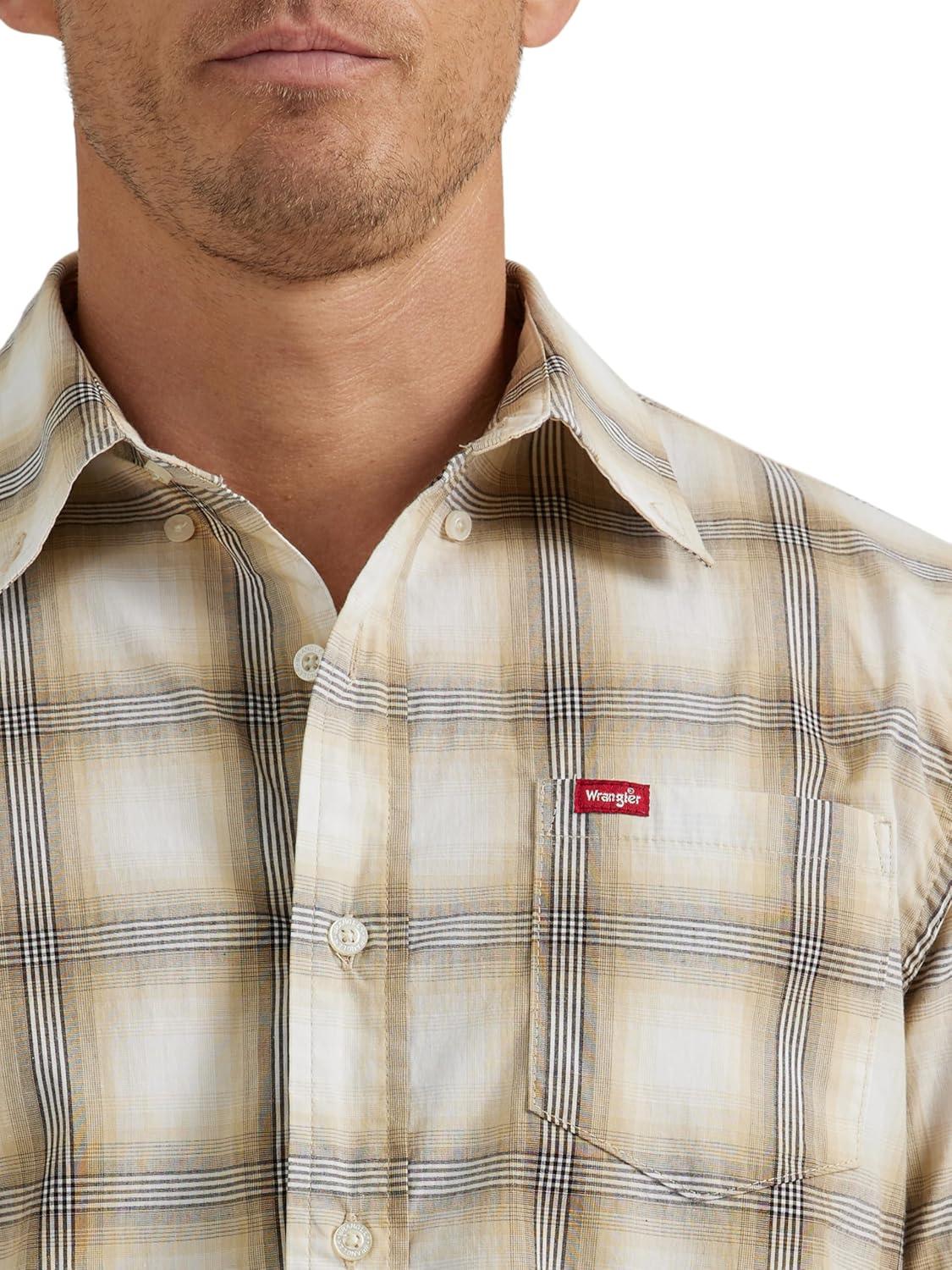 Wrangler Authentics Men’s Short Sleeve Classic Plaid Shirt(Pale Khaki Plaid)