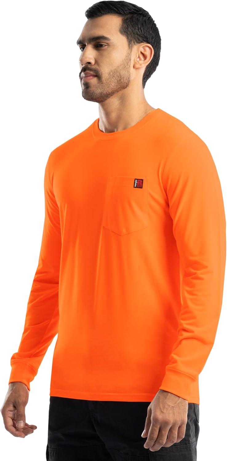 Wrangler Mens Long Sleeve Pocket T-Shirt with UPF(Orange)