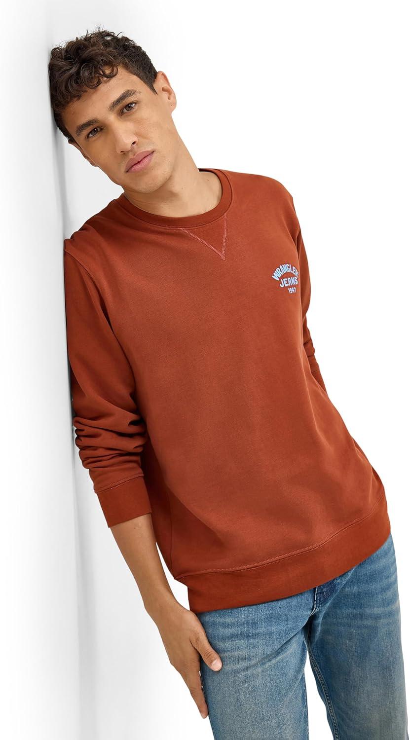 Wrangler Men’s Small Logo Crew Sweatshirt(Smoked Paprika)