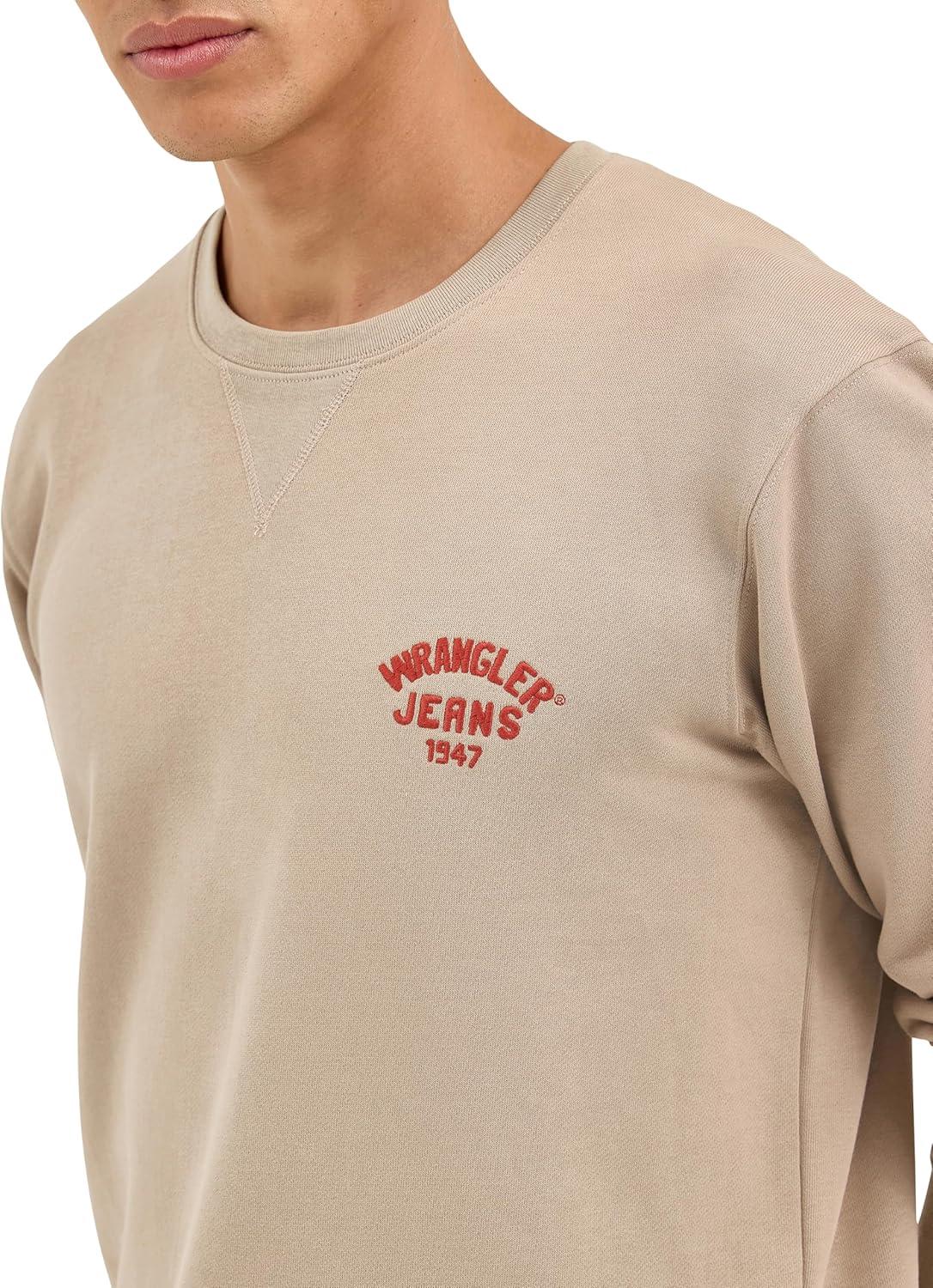 Wrangler Men’s Small Logo Crew Sweatshirt(Timberwolf)