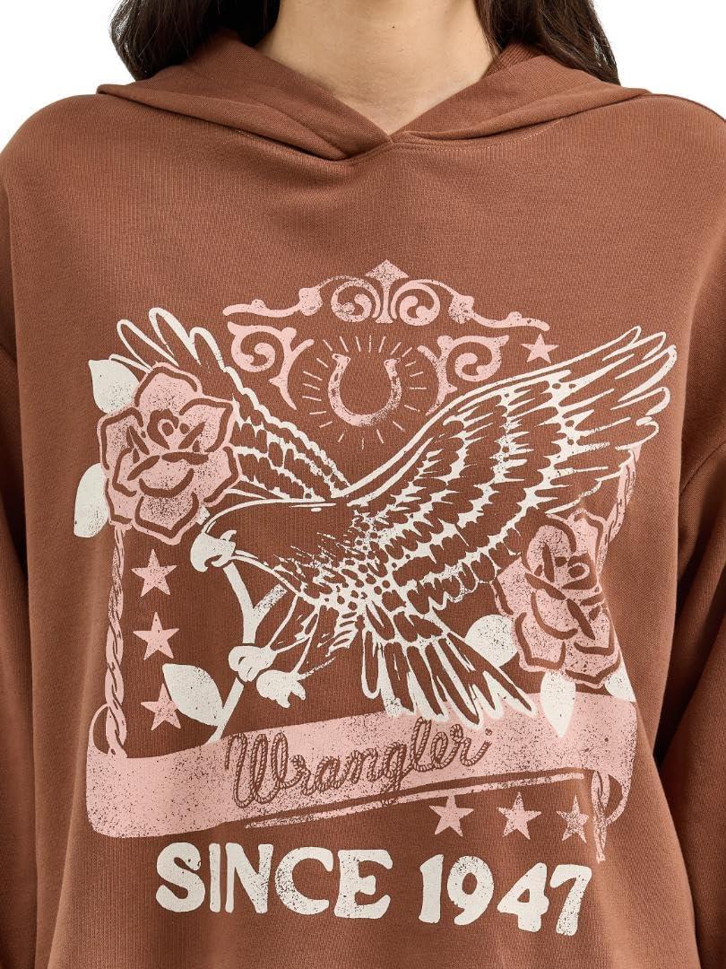 Wrangler womens Retro Cropped Hoodie Sweatshirt(Cacao Nibs)