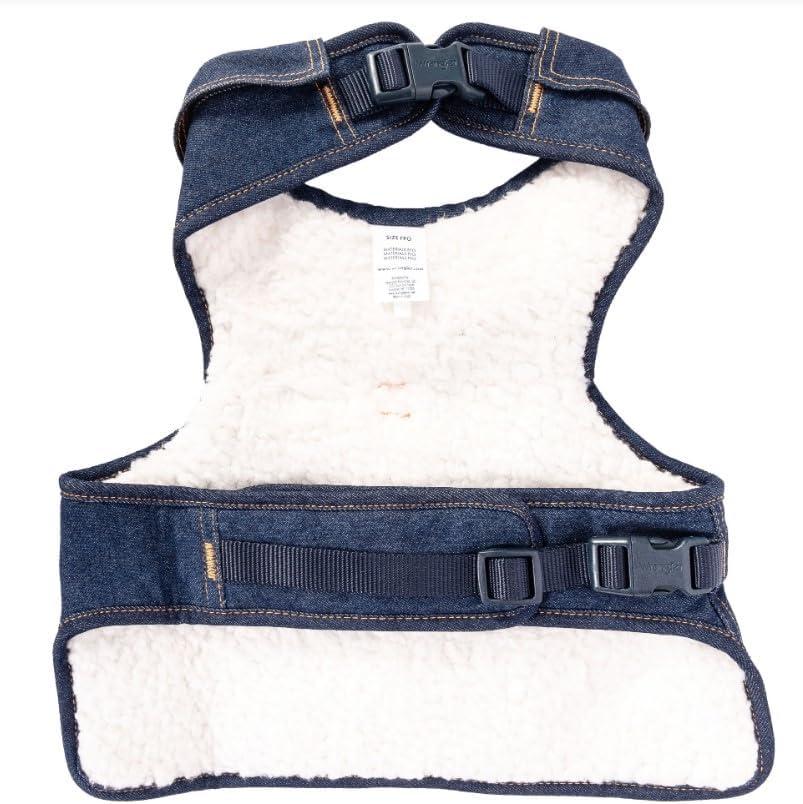 Wrangler Dark Wash Dog Vest Harness with Sherpa-S(Dark Wash Denim)