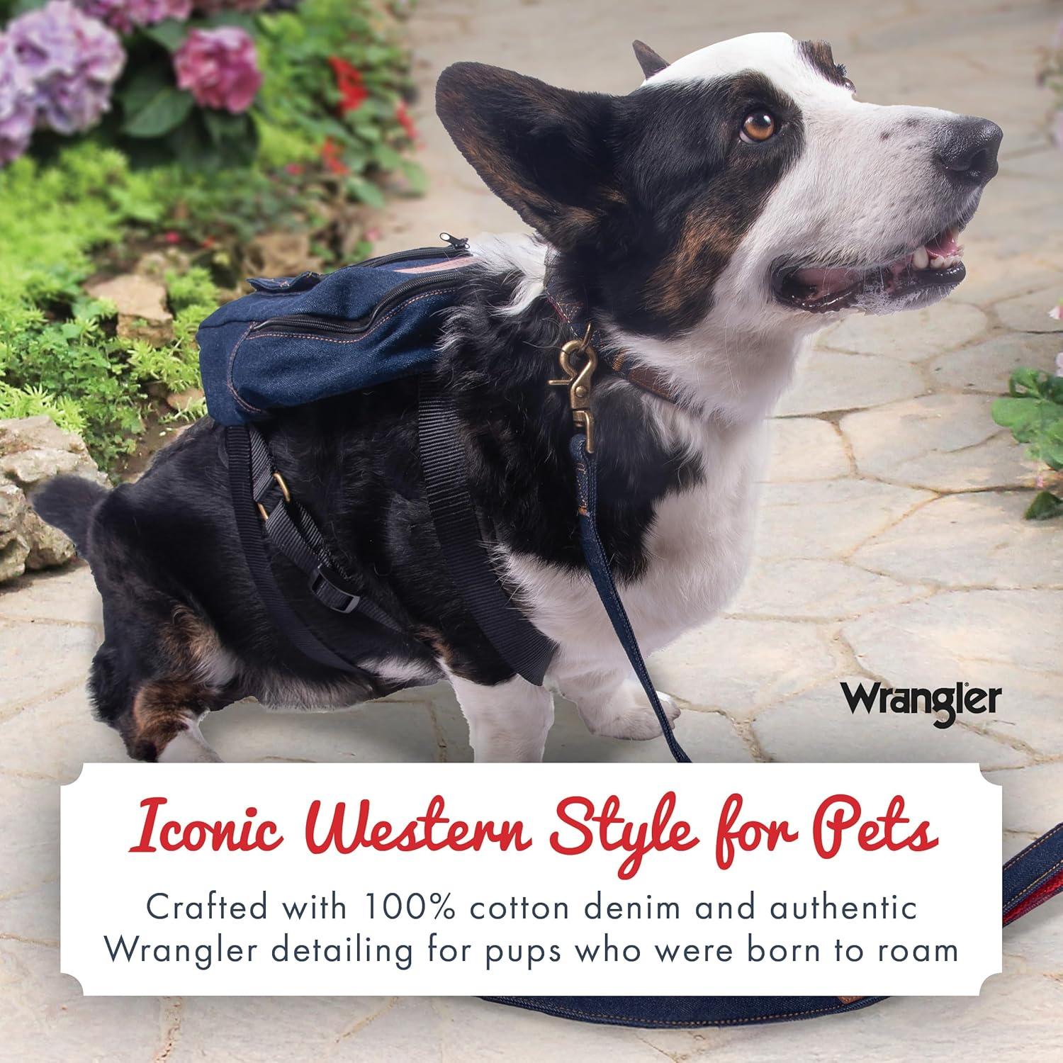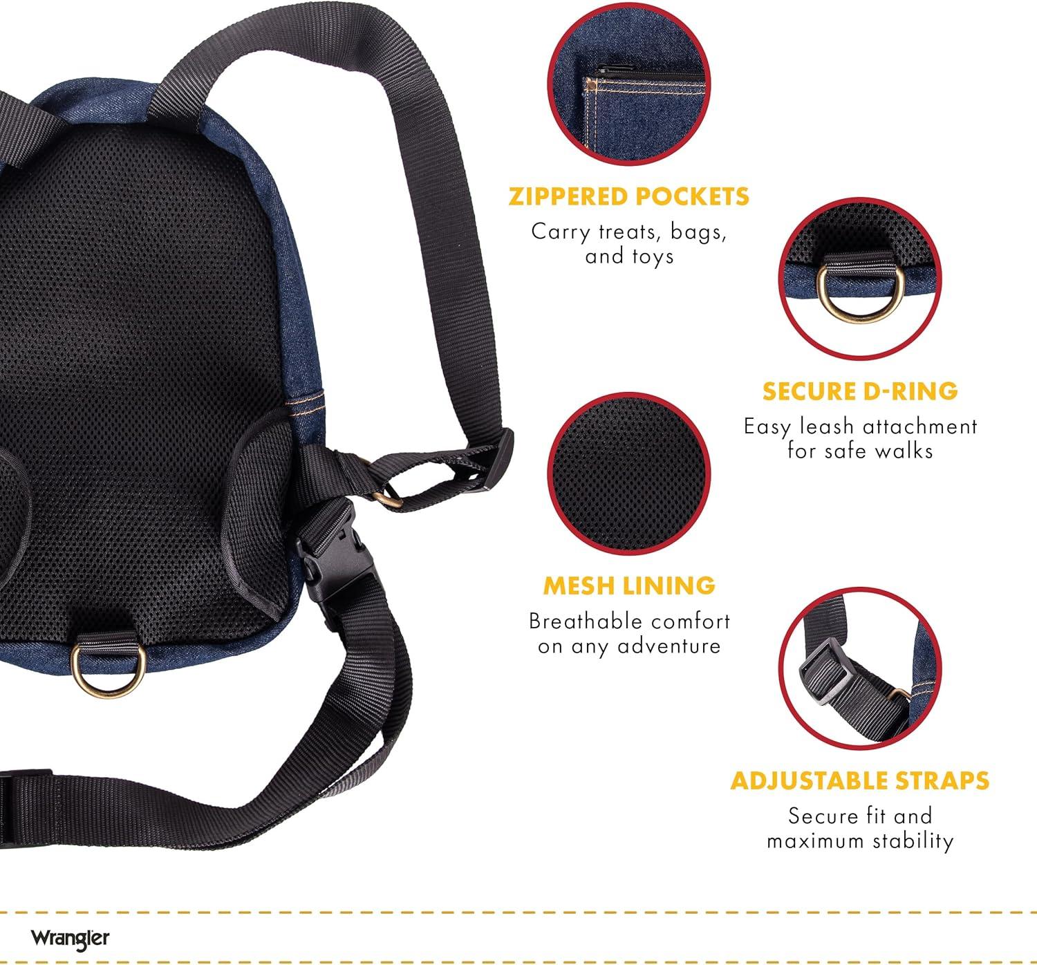 Wrangler Dog Backpack Harness – Dog Harness Backpack with Two Pockets to Hold Pet Accessories – Secure D-Ring for Leash Attachment – 100% Cotton Denim – Machine Washable for Easy Cleaning (S)(Small)