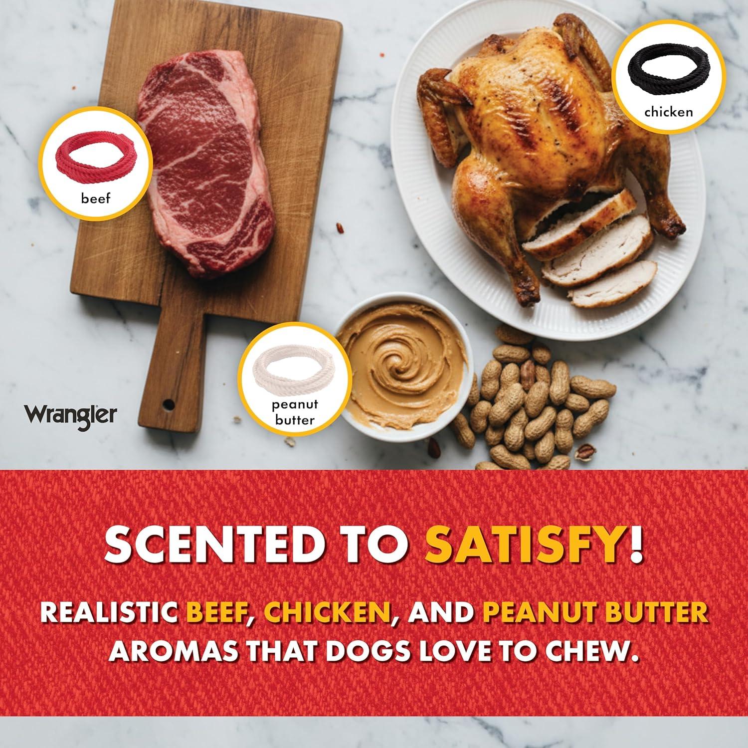 Wrangler Foam Coiled Rope Dog Chew Toy – Scented Dog Rope Toy for Medium to Large Dogs – Pet-Safe Foam Toy for Tug & Fetch – Promotes Healthy Chewing – Indoor/Outdoor Play (Red, Beef)(Black)
