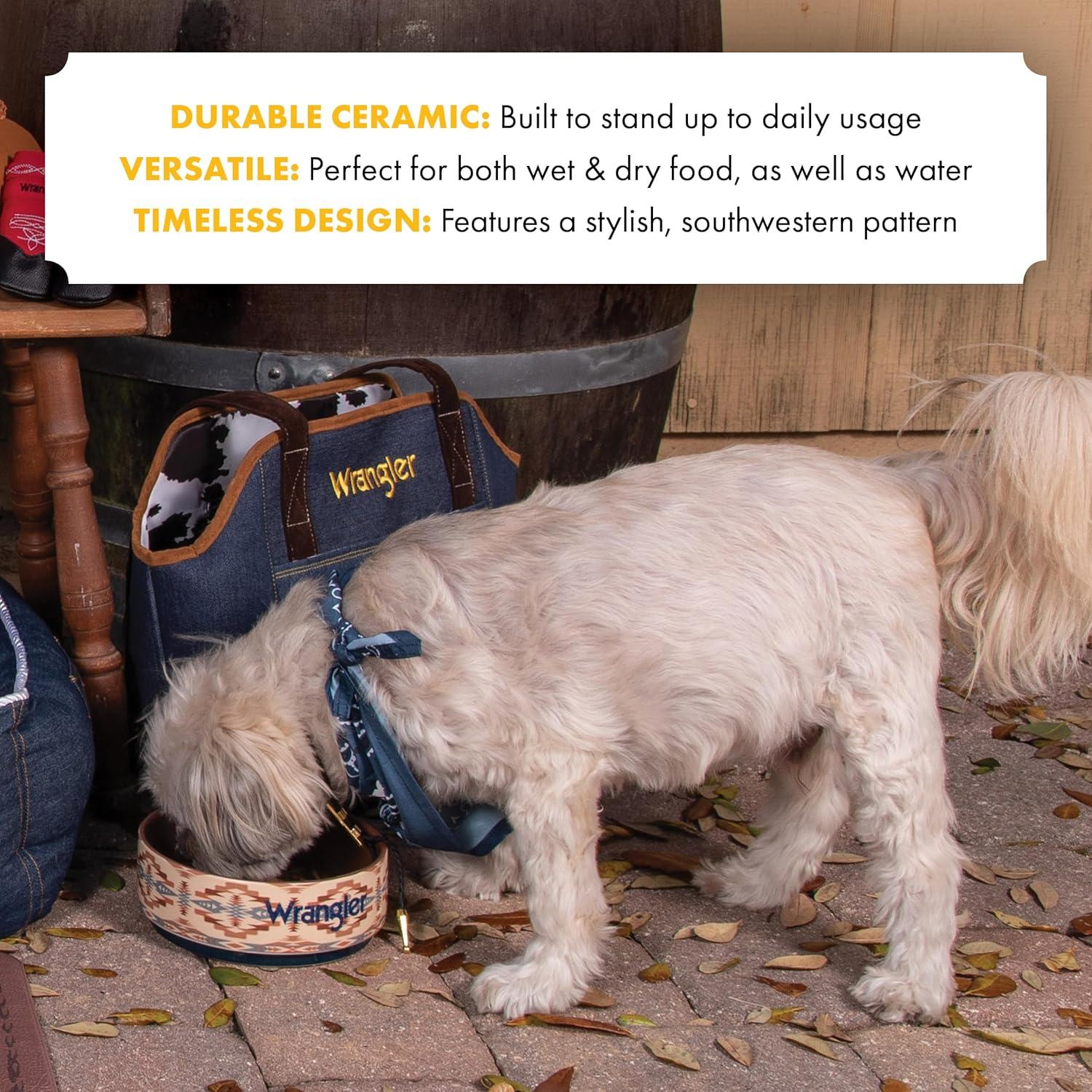 Wrangler Ceramic Dog Bowl – Heavy-Duty, Durable, Microwave & Dishwasher Safe – 38oz Stoneware Pet Bowl with Silicone Base – Southwest-Inspired Design for Food & Water