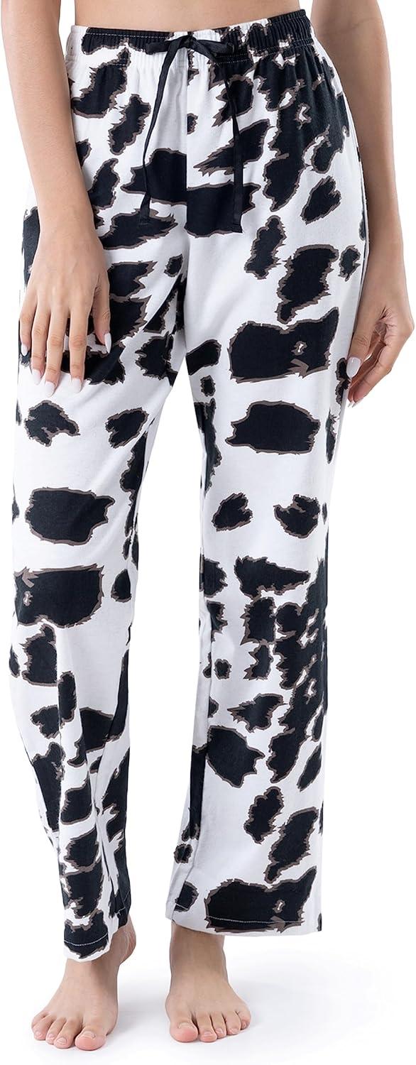 Wrangler Women’s Jersey Top and Flannel Pant Sleep Pajama Set(Black/Cow Print)