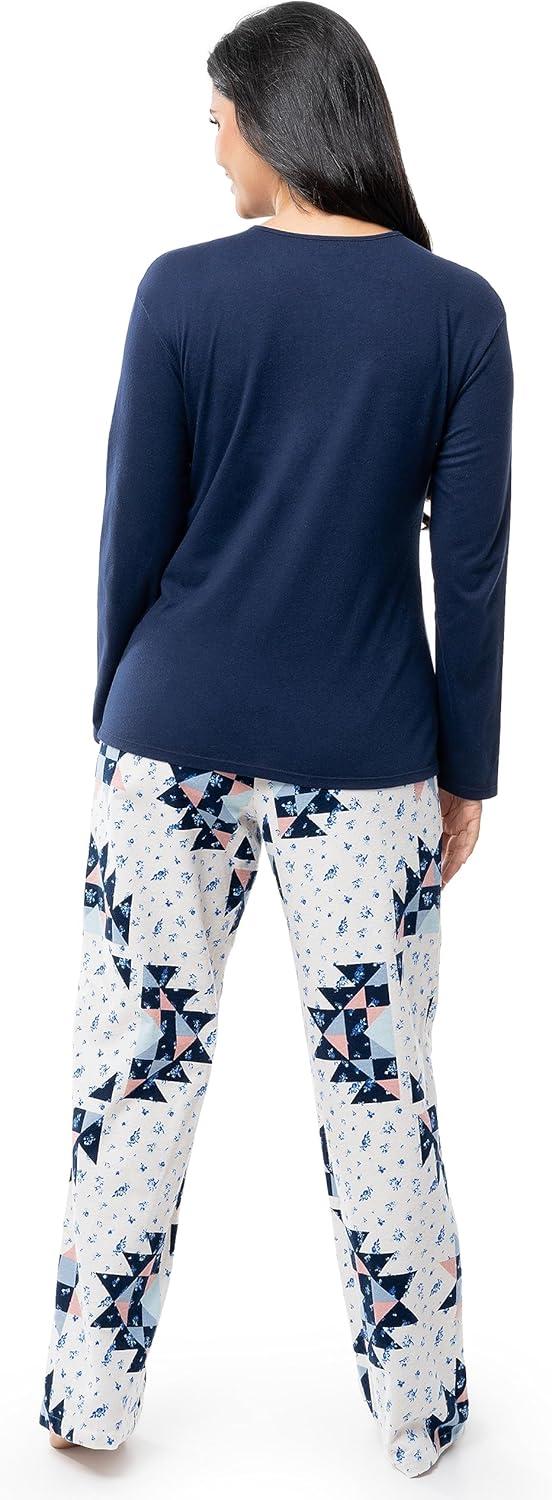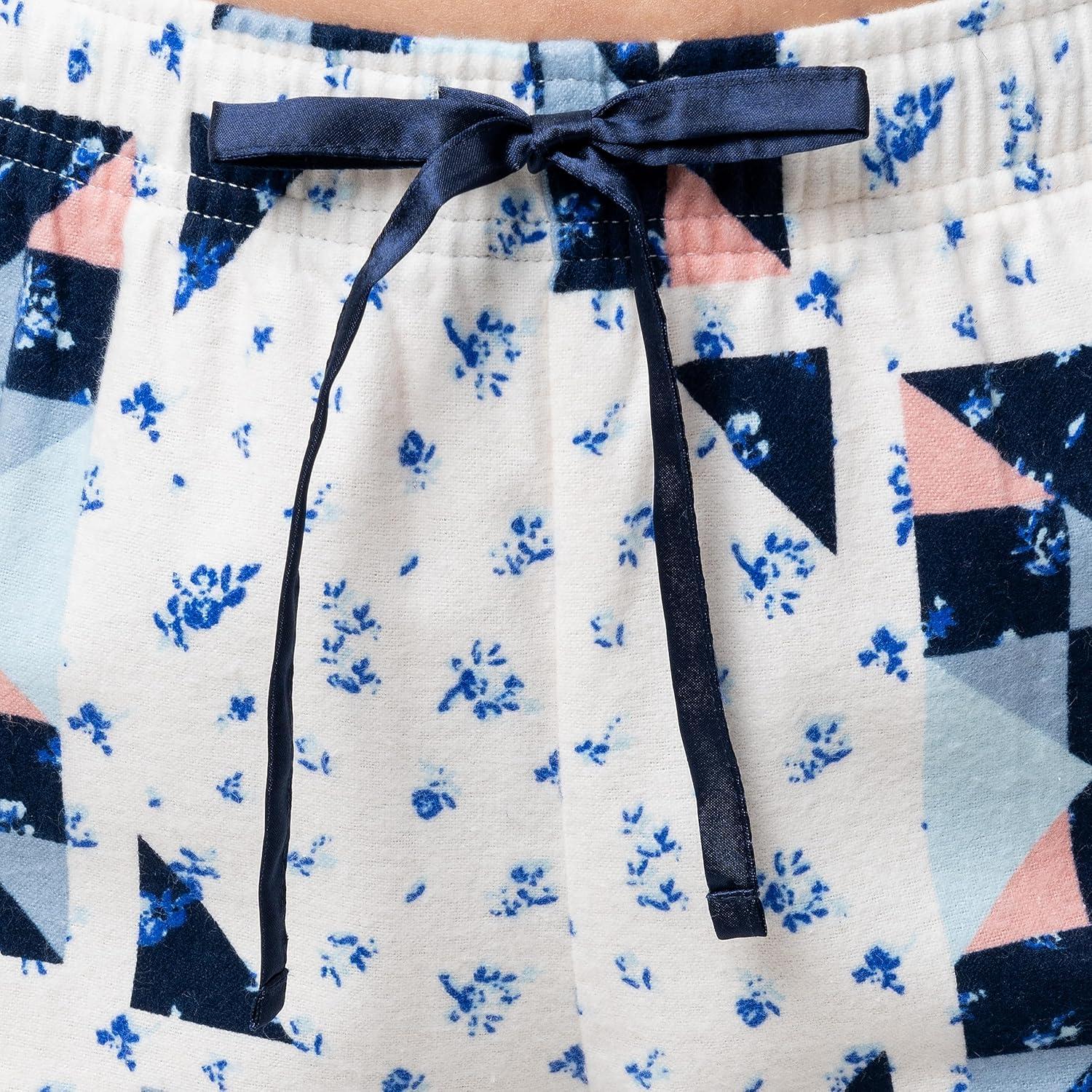 Wrangler Women’s Jersey Top and Flannel Pant Sleep Pajama Set(Blue/Floral Patchwork Quilt)
