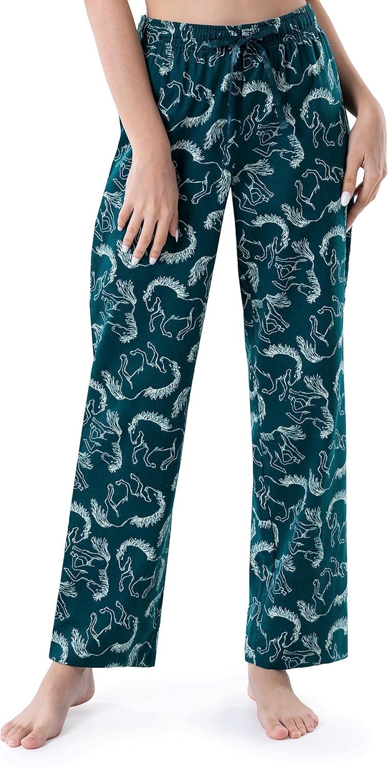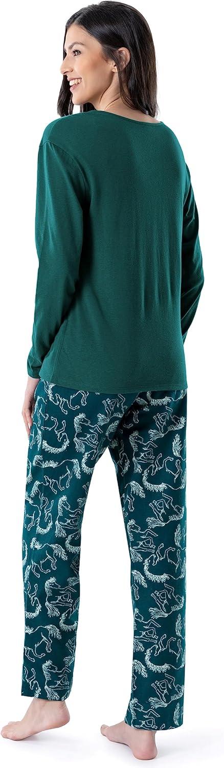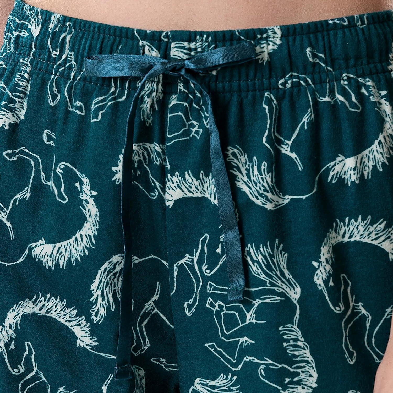 Wrangler Women’s Jersey Top and Flannel Pant Sleep Pajama Set(Deep Teal/Horse Toss)