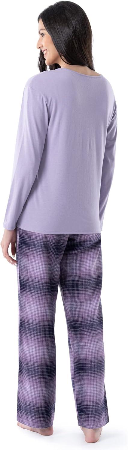 Wrangler Women’s Jersey Top and Flannel Pant Sleep Pajama Set(Lilac/Ombre Plaid)