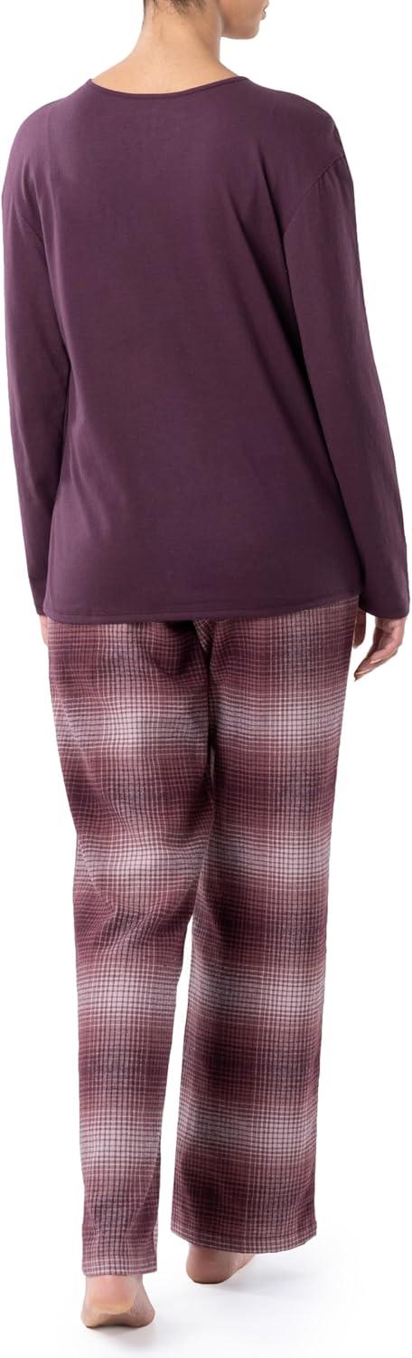Wrangler Women’s Jersey Top and Flannel Pant Sleep Pajama Set(Wine/Ombre Plaid)