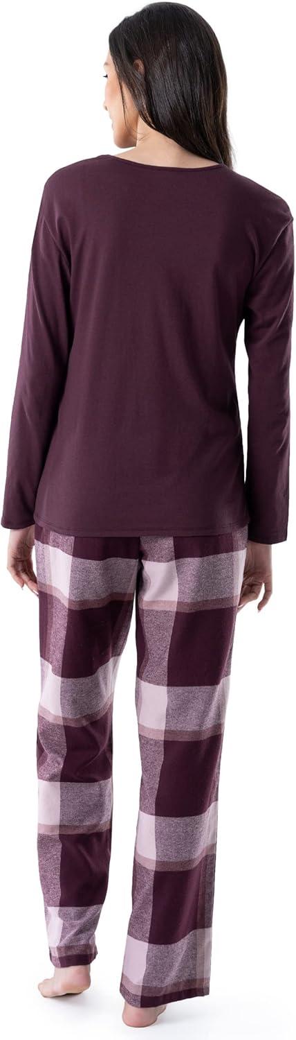 Wrangler Women’s Jersey Top and Flannel Pant Sleep Pajama Set(Wine/Plaid)