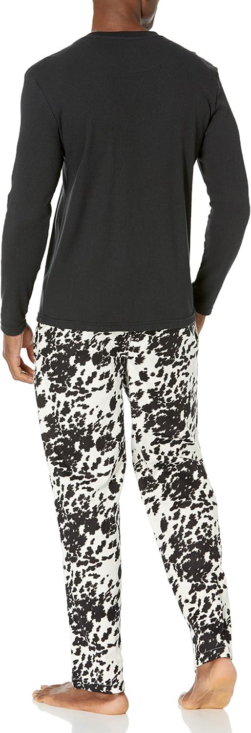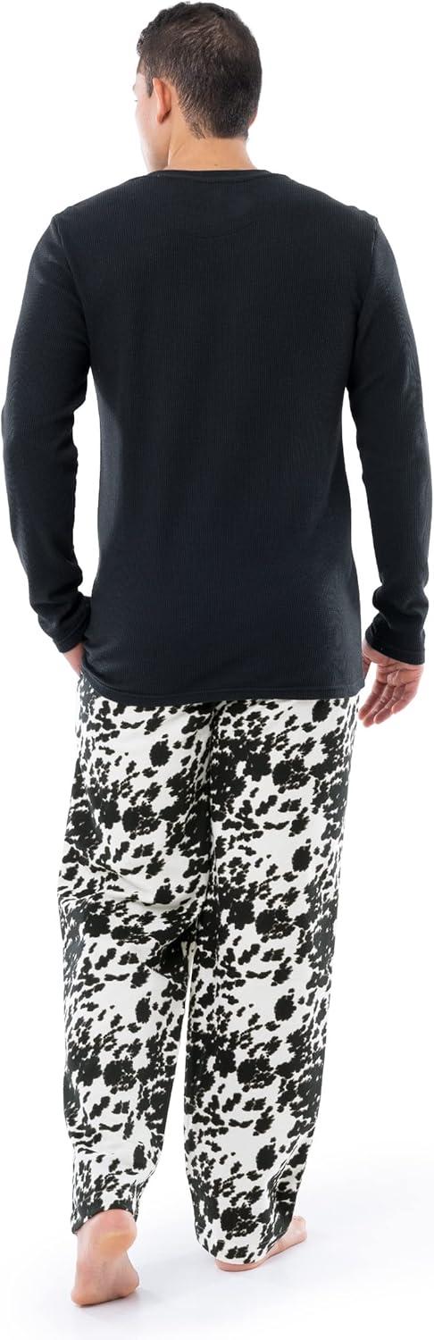 Wrangler mens Waffle Knit Top and Flannel Pajama Pant Pajama Sleep Set(Black/Cow Print)