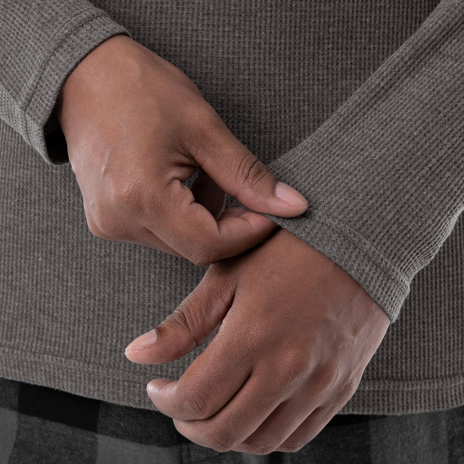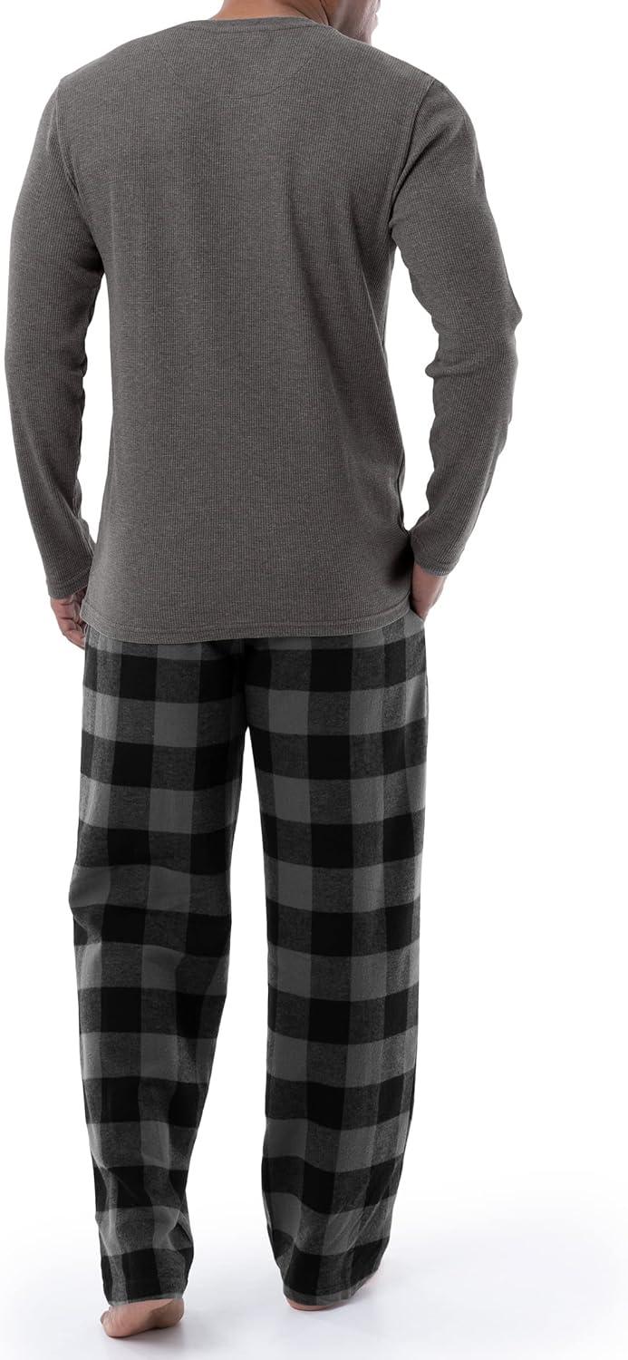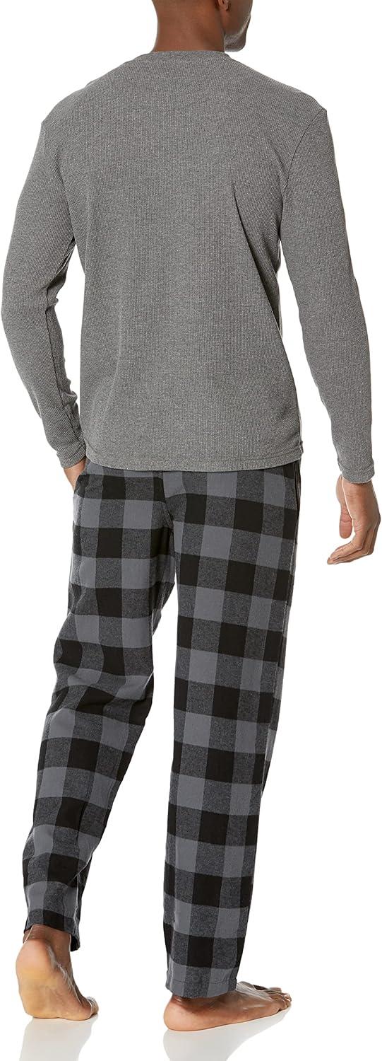 Wrangler mens Waffle Knit Top and Flannel Pajama Pant Pajama Sleep Set(Charcoal/Plaid)