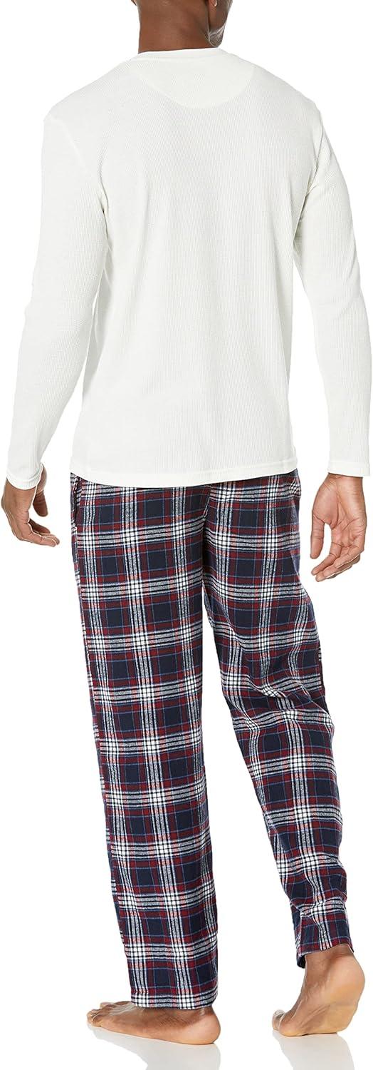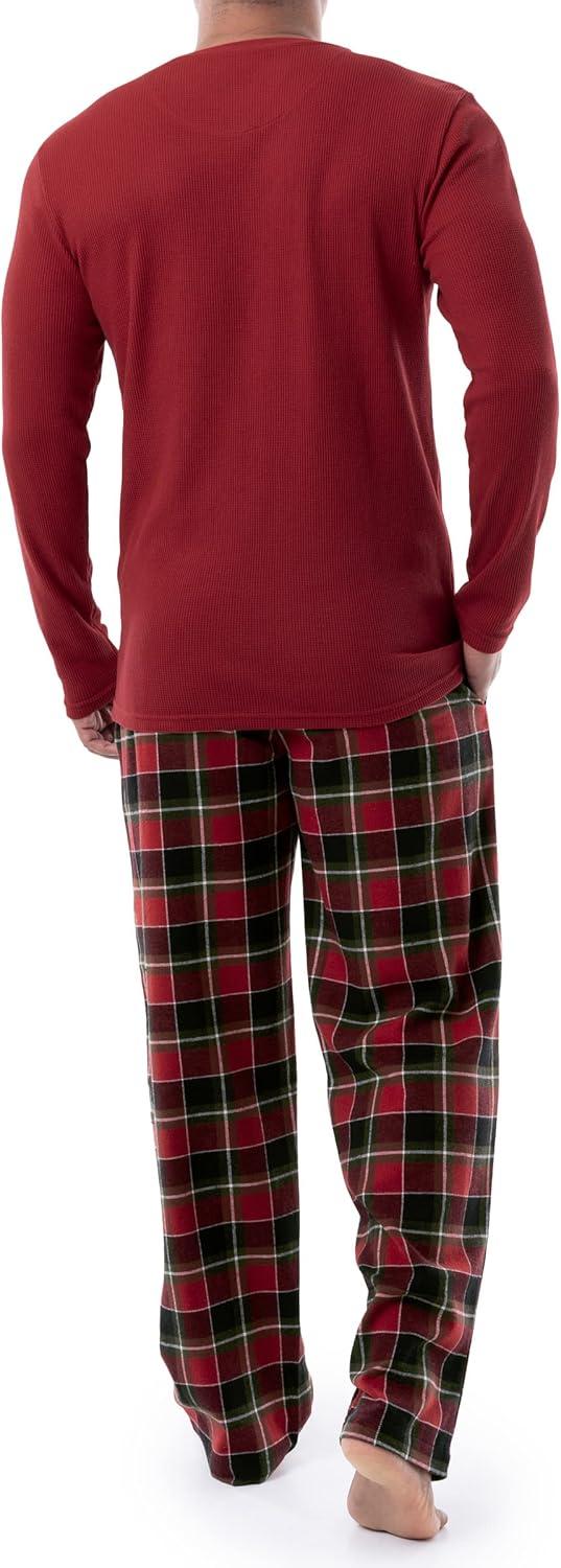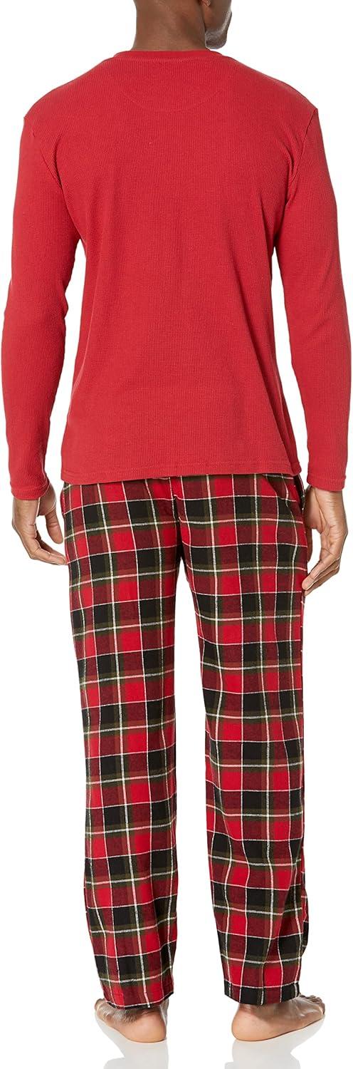 Wrangler mens Waffle Knit Top and Flannel Pajama Pant Pajama Sleep Set(Red/Plaid)