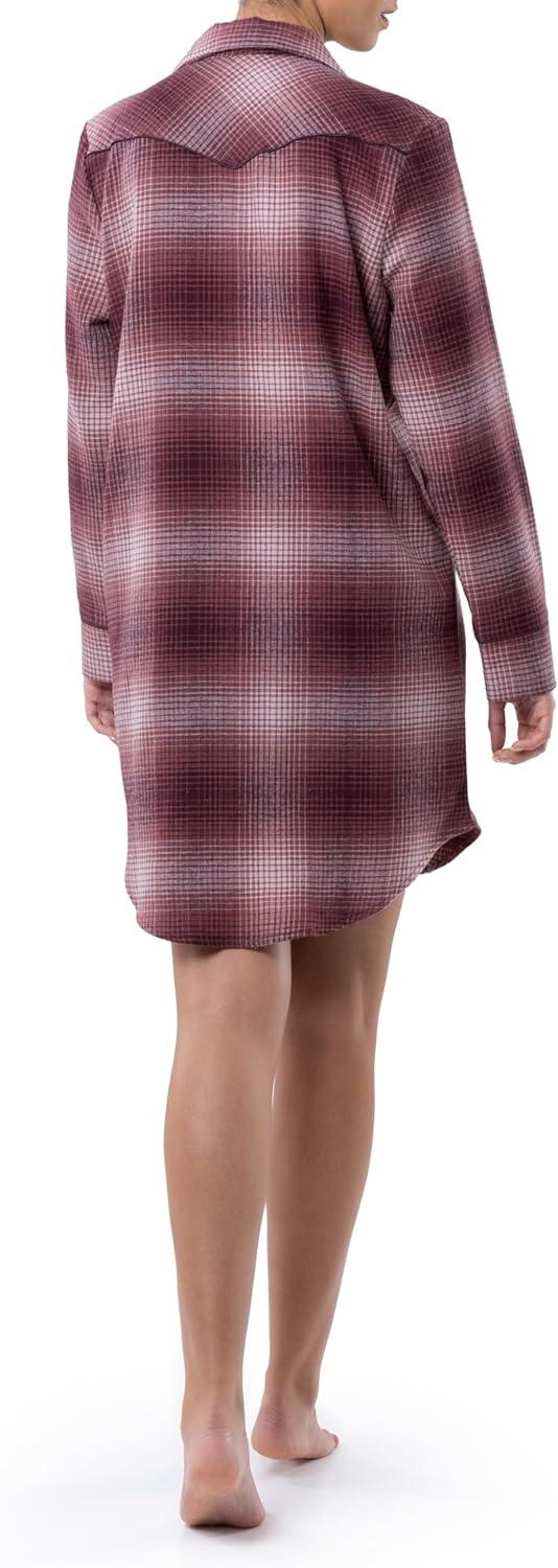 Wrangler womens Mid-length Flannel Sleep Shirtdress(Ombre Plaid)