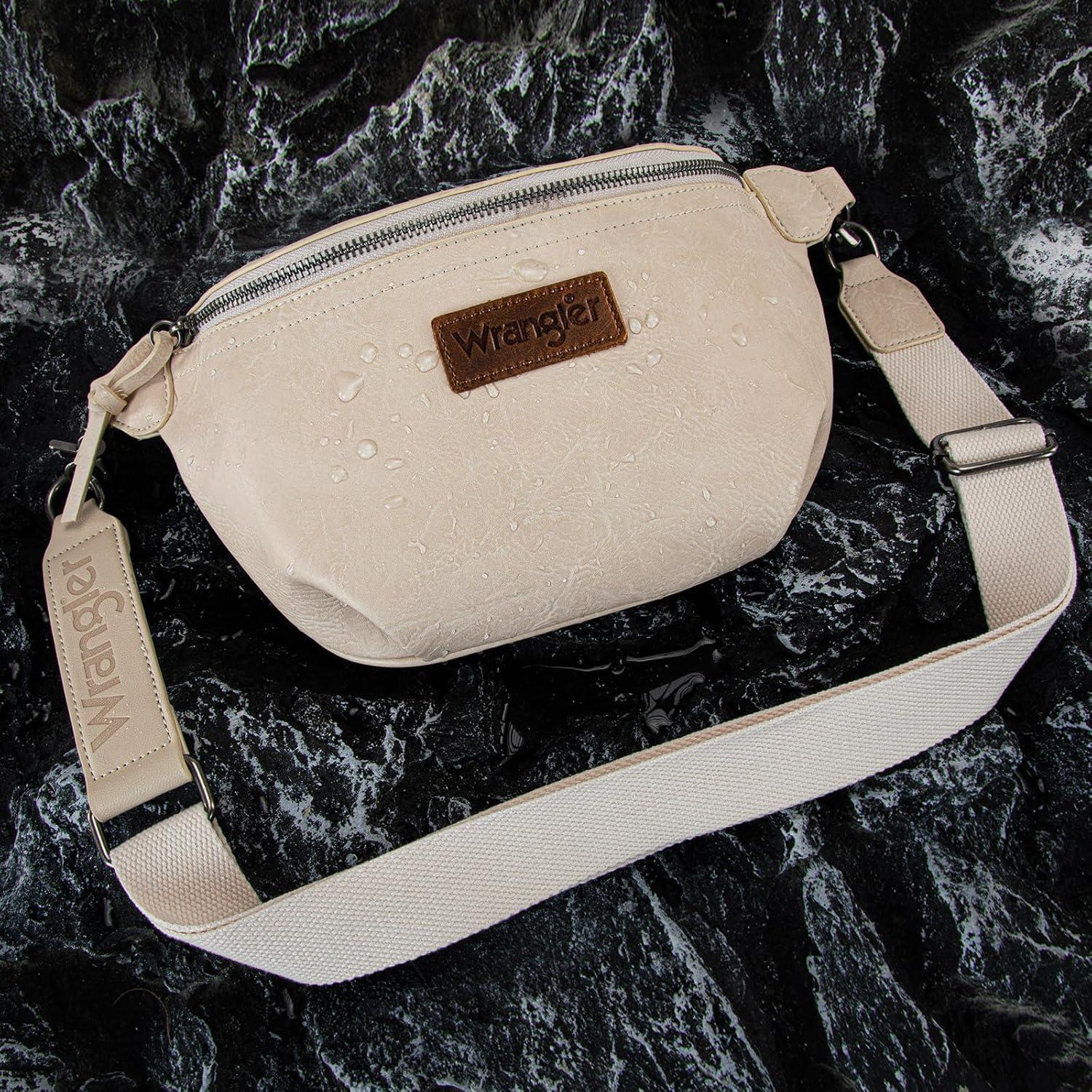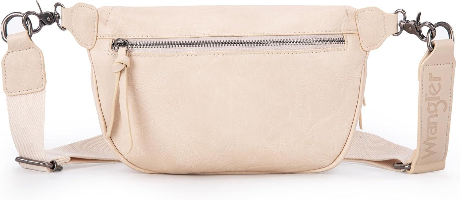 Wrangler Large Fanny Packs for Women Waist Bag Travel Belt Bags Crossbody Sling Purse Brown(A-Beige)