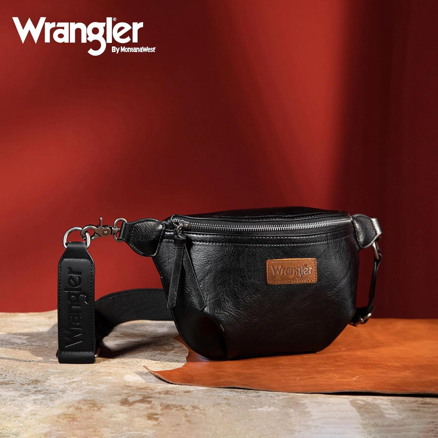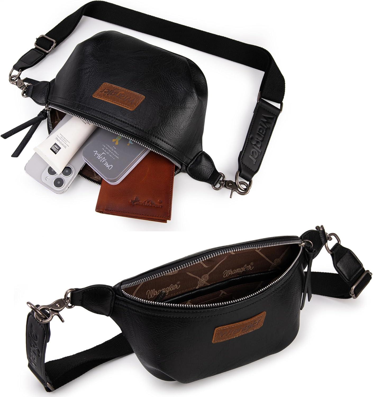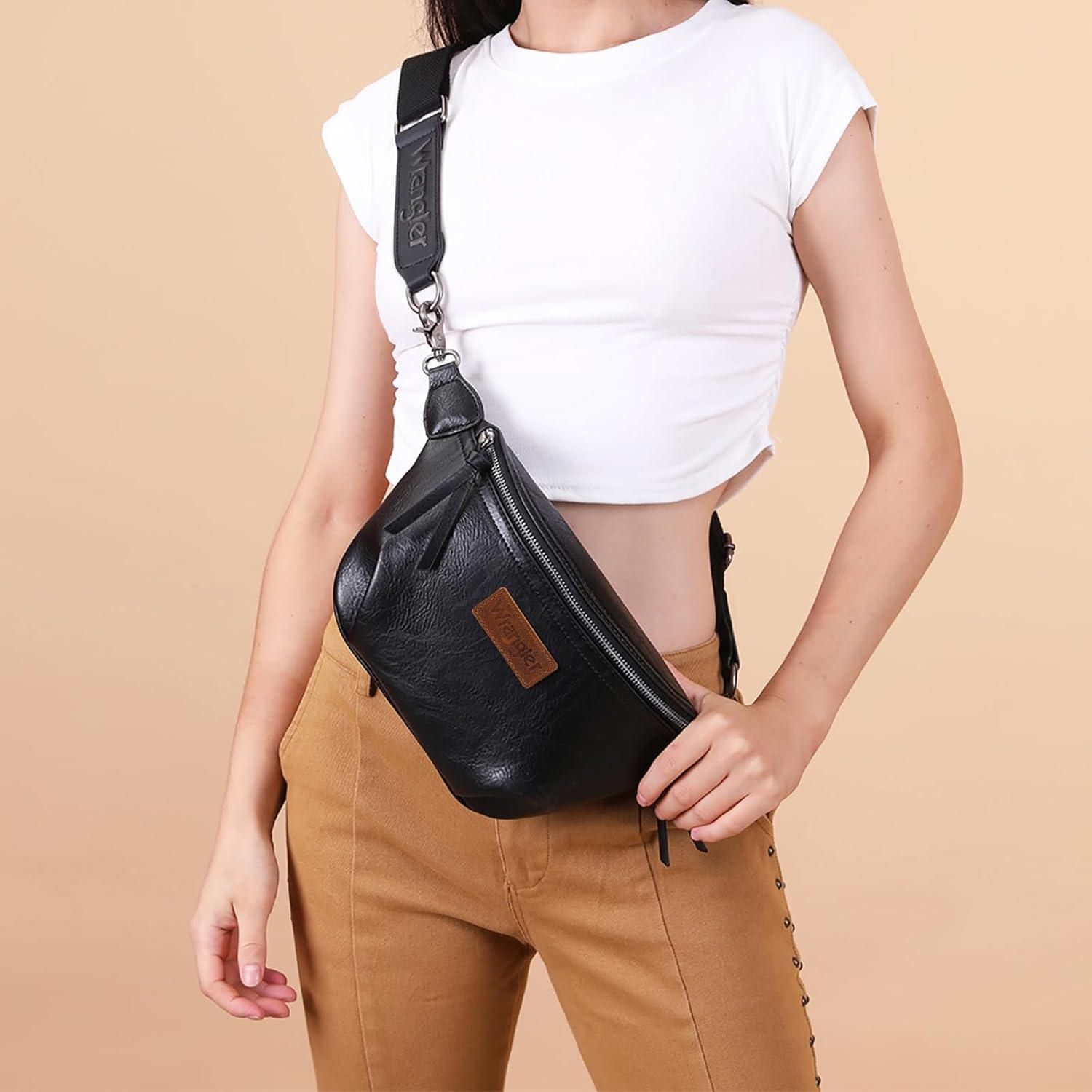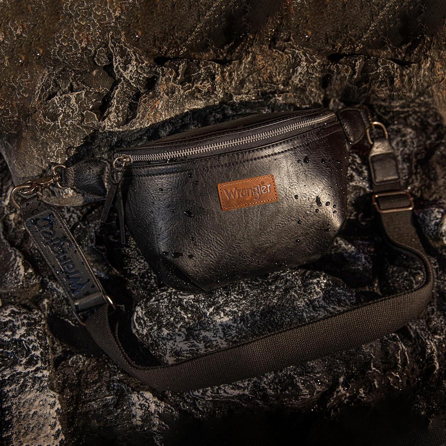 Wrangler Large Fanny Packs for Women Waist Bag Travel Belt Bags Crossbody Sling Purse Brown(A-Black)