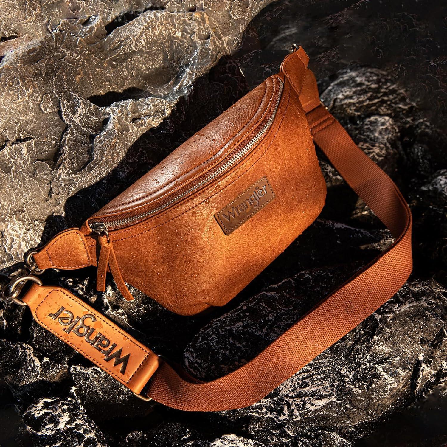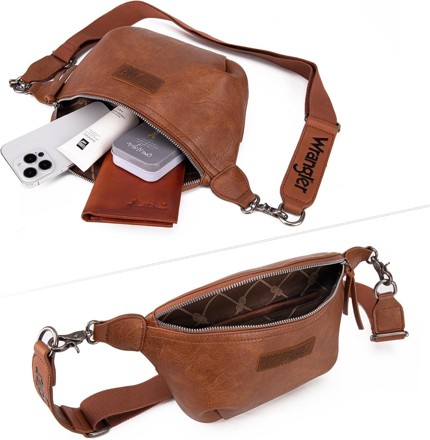 Wrangler Large Fanny Packs for Women Waist Bag Travel Belt Bags Crossbody Sling Purse Brown(A-Brown)