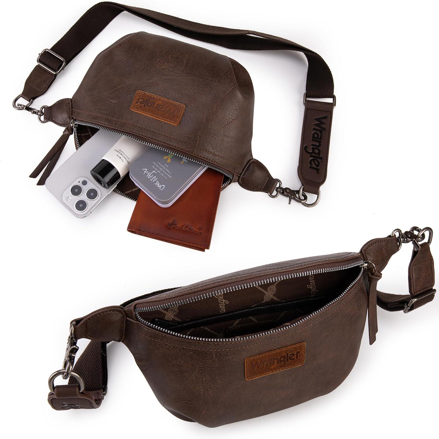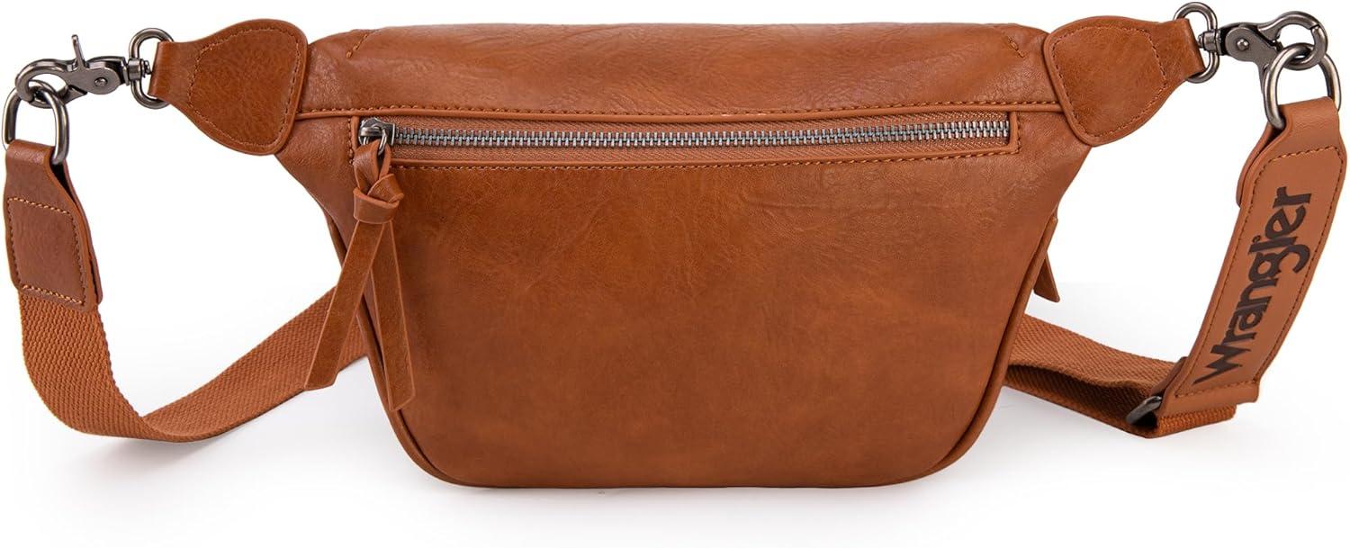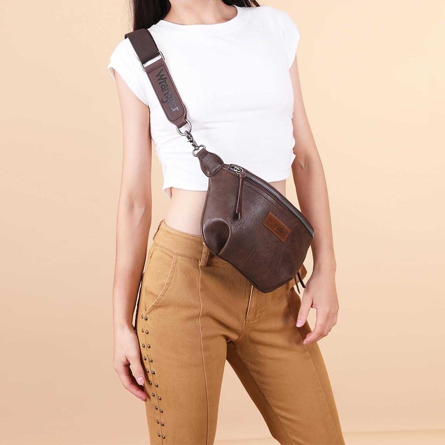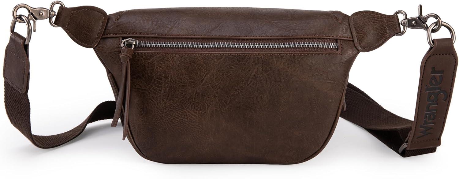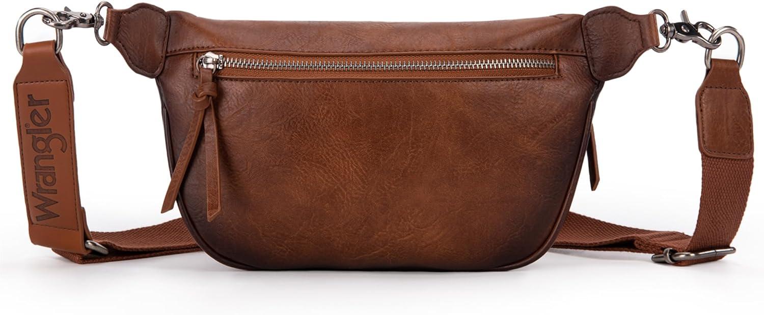 Wrangler Large Fanny Packs for Women Waist Bag Travel Belt Bags Crossbody Sling Purse Brown(B-Distressed Brown)