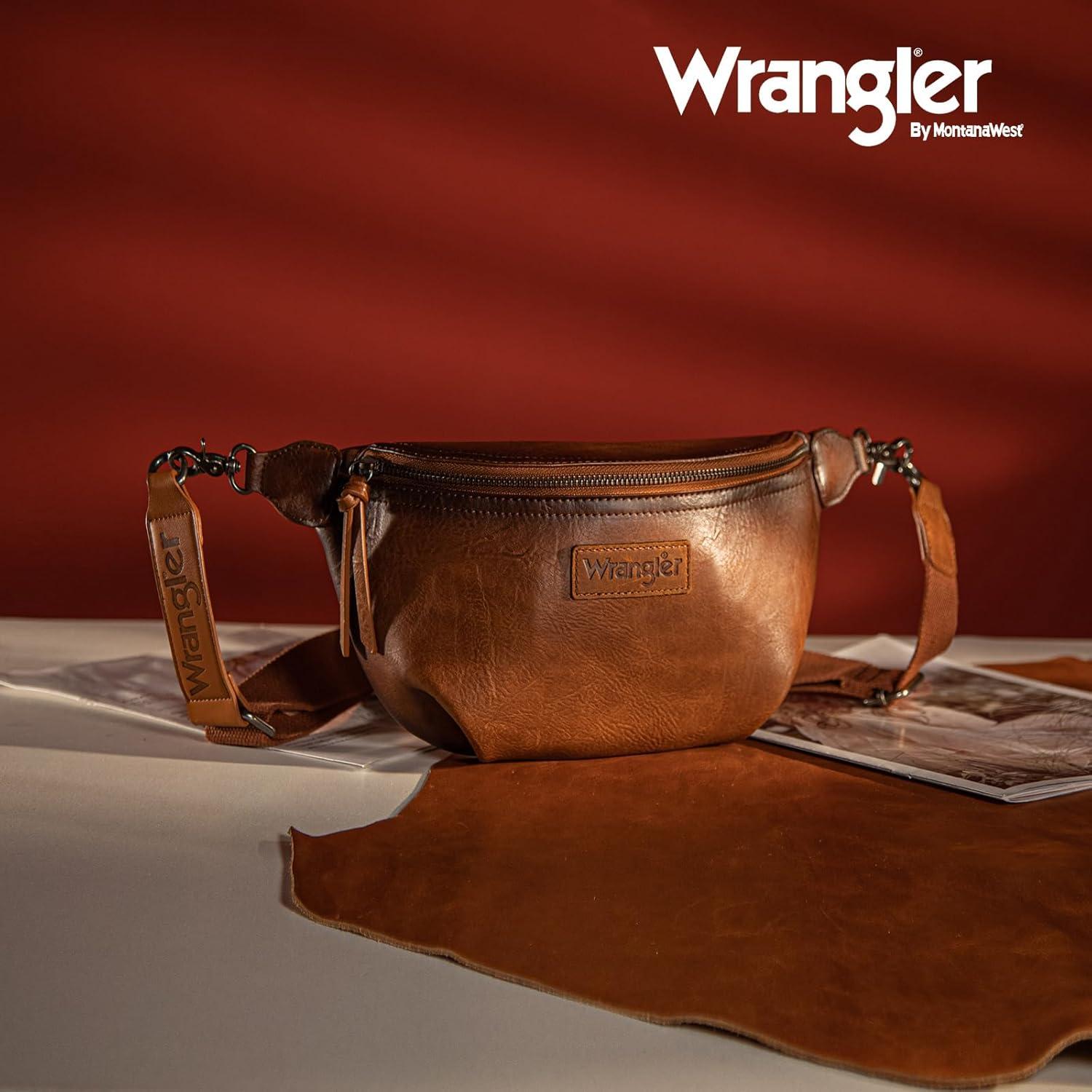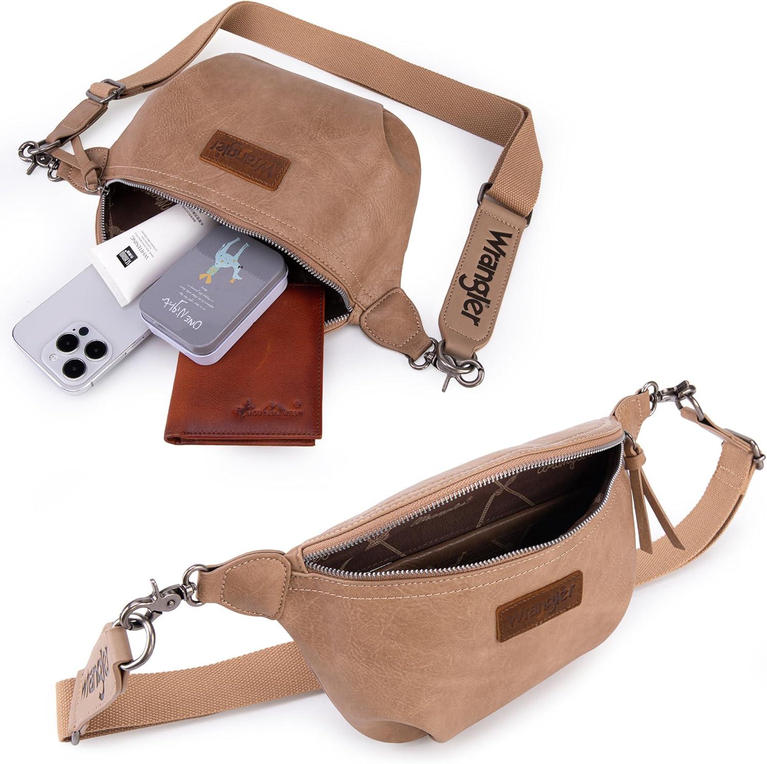 Wrangler Large Fanny Packs for Women Waist Bag Travel Belt Bags Crossbody Sling Purse Brown(A-Light Brown)
