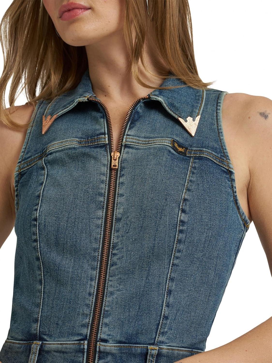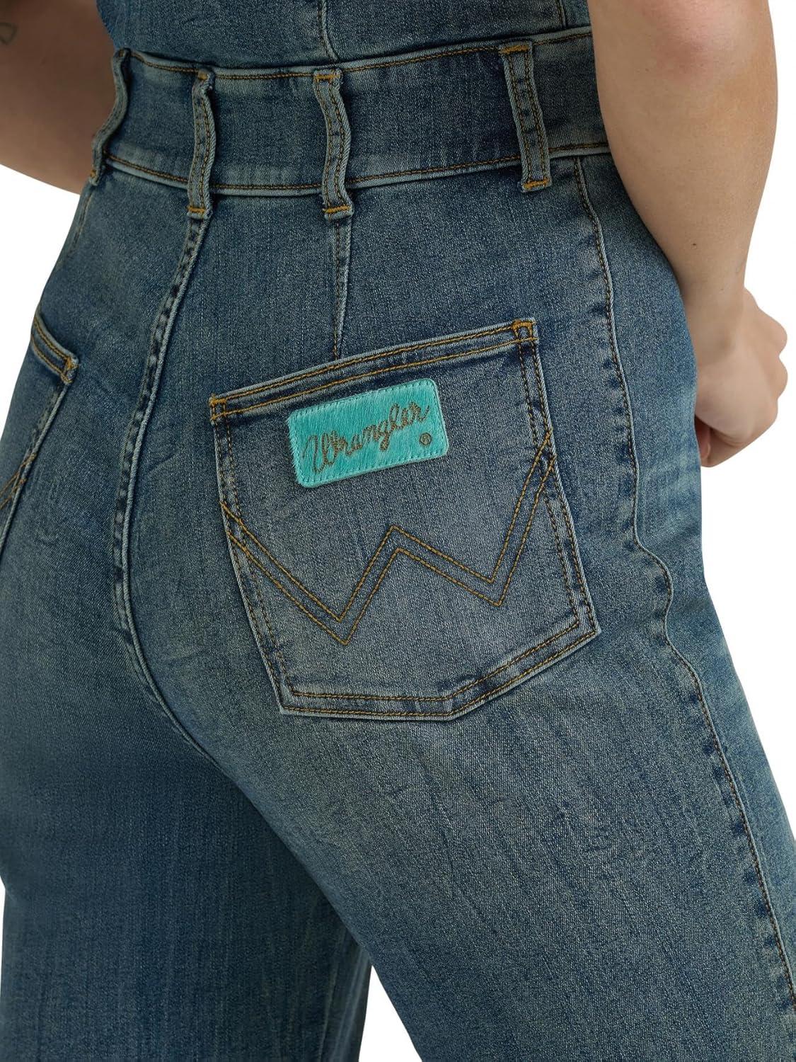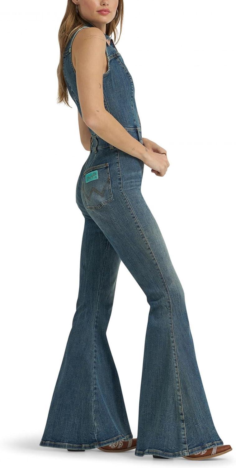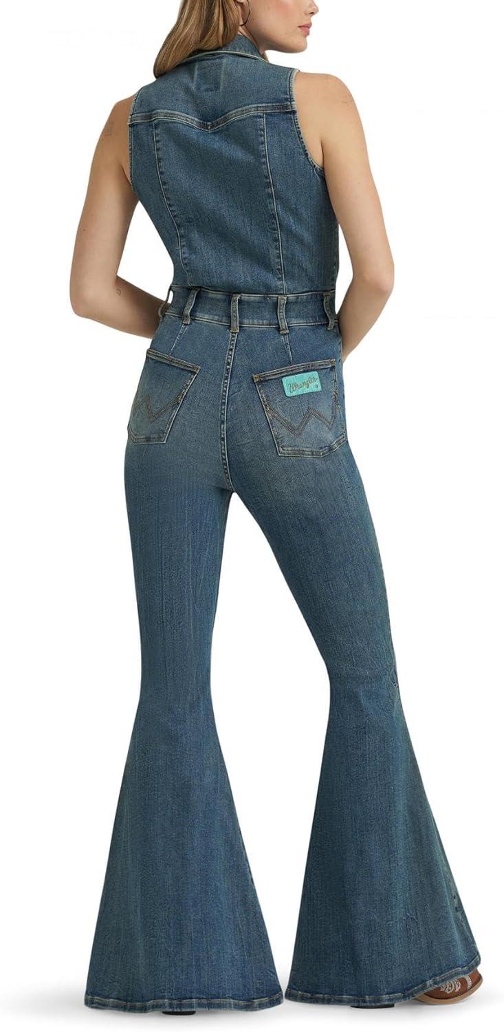 Wrangler womens X Lainey Wilson Sleeveless Denim Flare Catsuit(Denim)