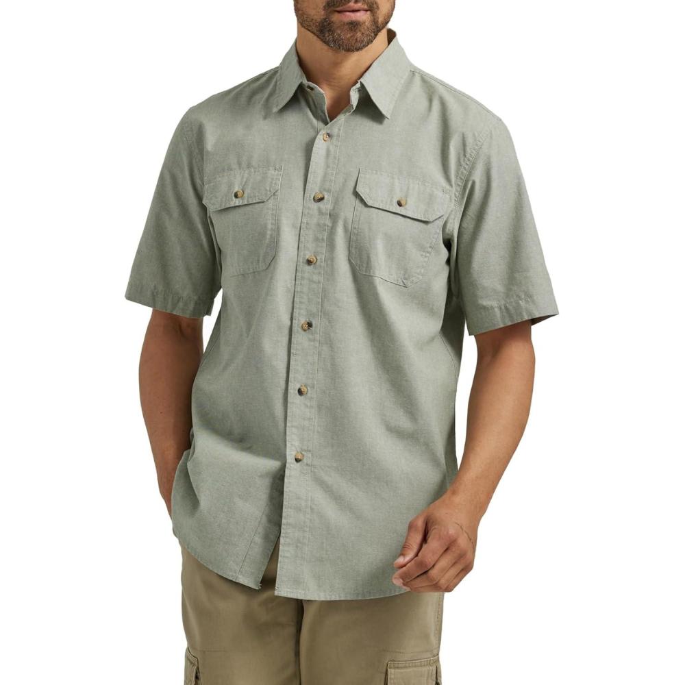 Wrangler Authentics mens Short Sleeve Classic Woven Shirt(Sea Spray Chambray)
