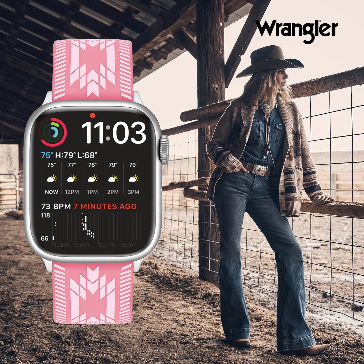 Wrangler® “Aztec Trail” Silicone Band for Apple Watch®, Western Aztec Pattern, Fits all Apple Watch® Series and Sizes(Pink)