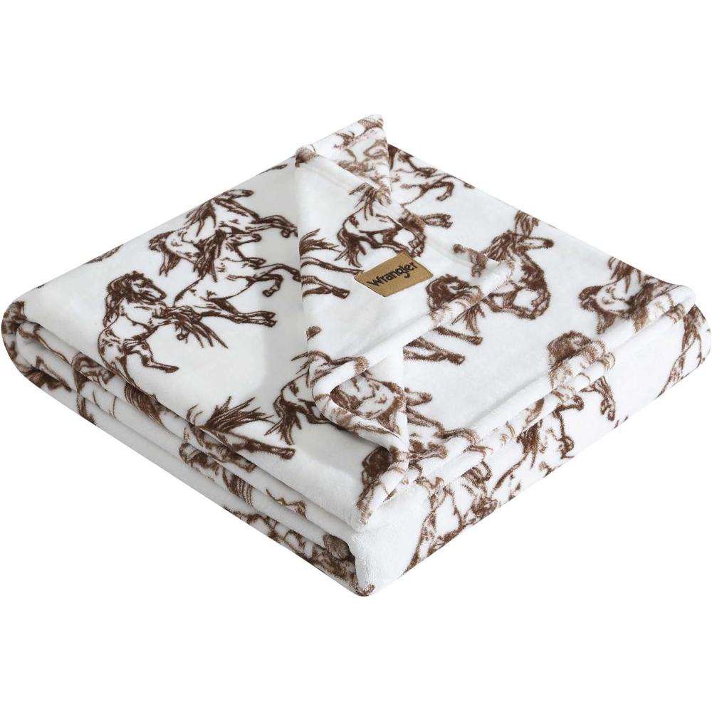Wrangler – Blanket, Super Soft Plush Bedding, Yellowstone Inspired Throw Blanket for Couch or Bed (Cactus Garden Green, 50″ x 70″)(Mustangs Brown)