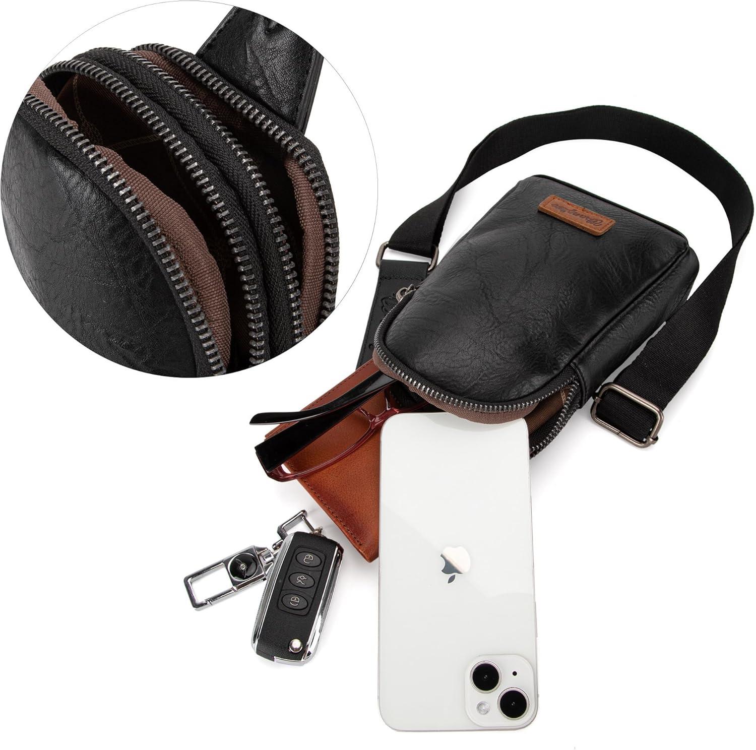 Wrangler Crossbody Sling Bag for Women Fanny Packs Chest Bags for Travel(Classic-black)