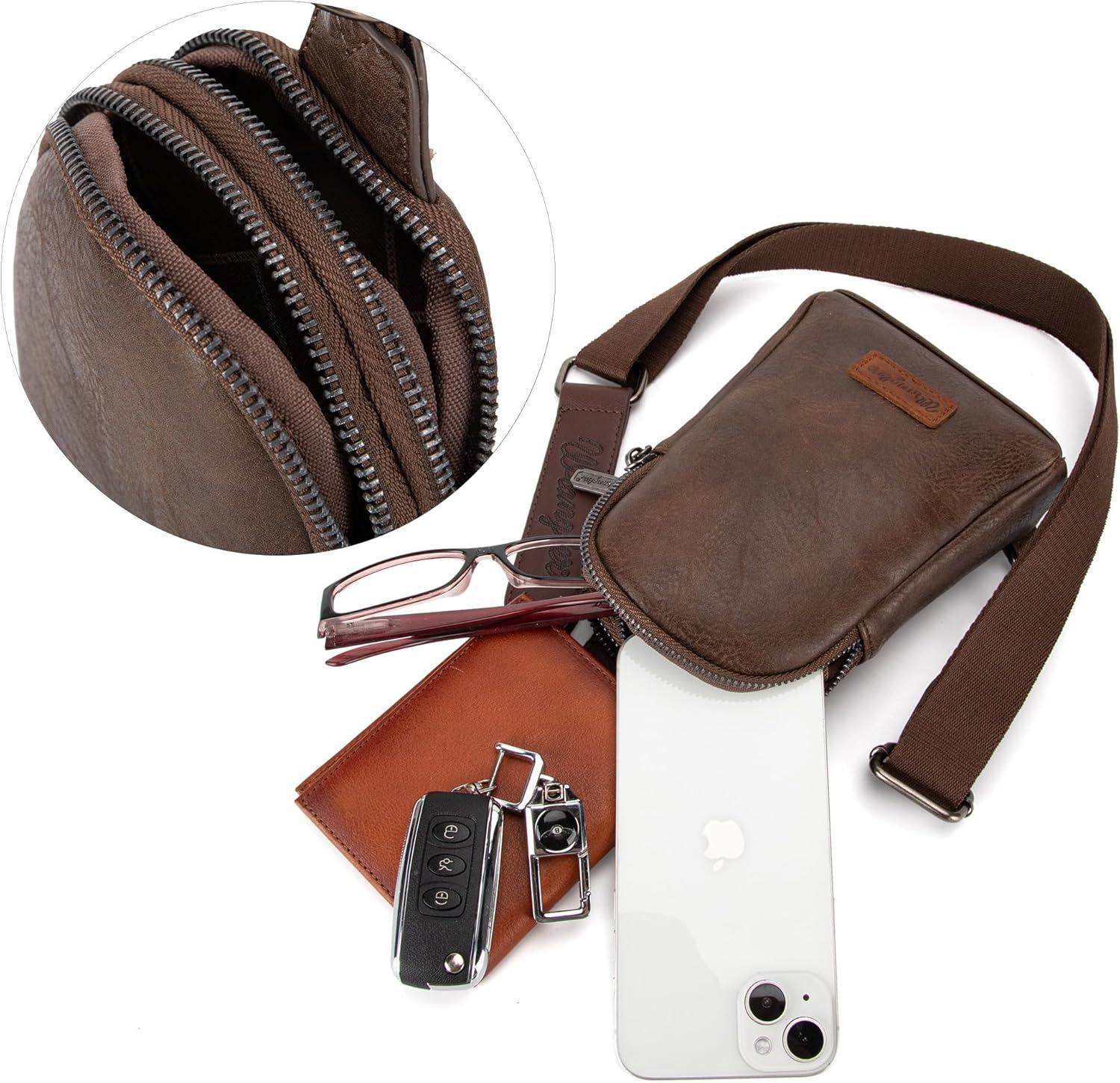 Wrangler Crossbody Sling Bag for Women Fanny Packs Chest Bags for Travel(Classic-coffee)