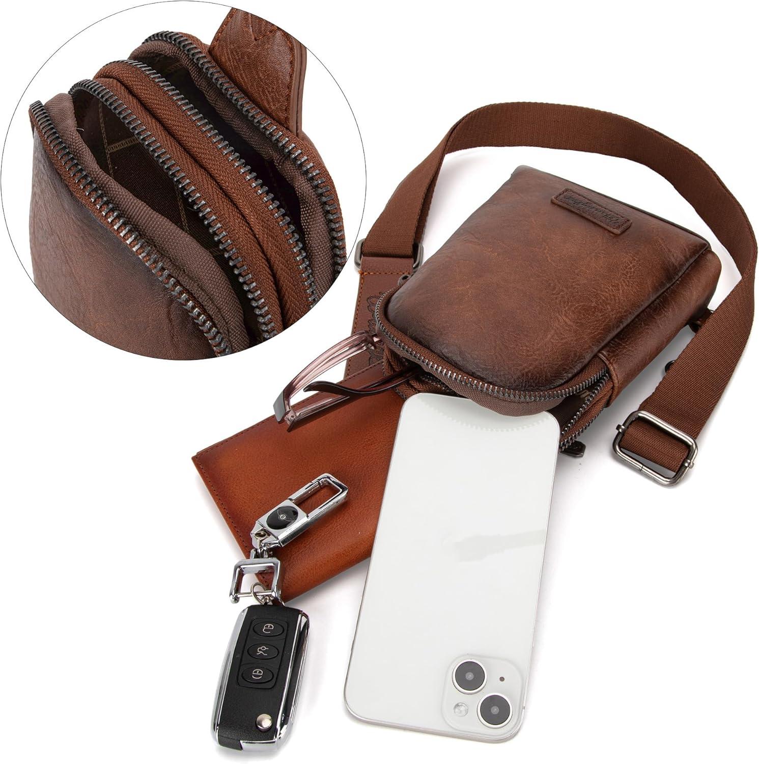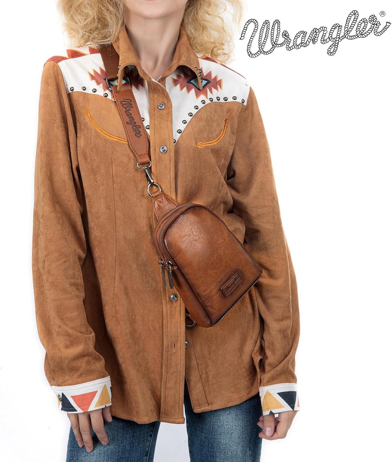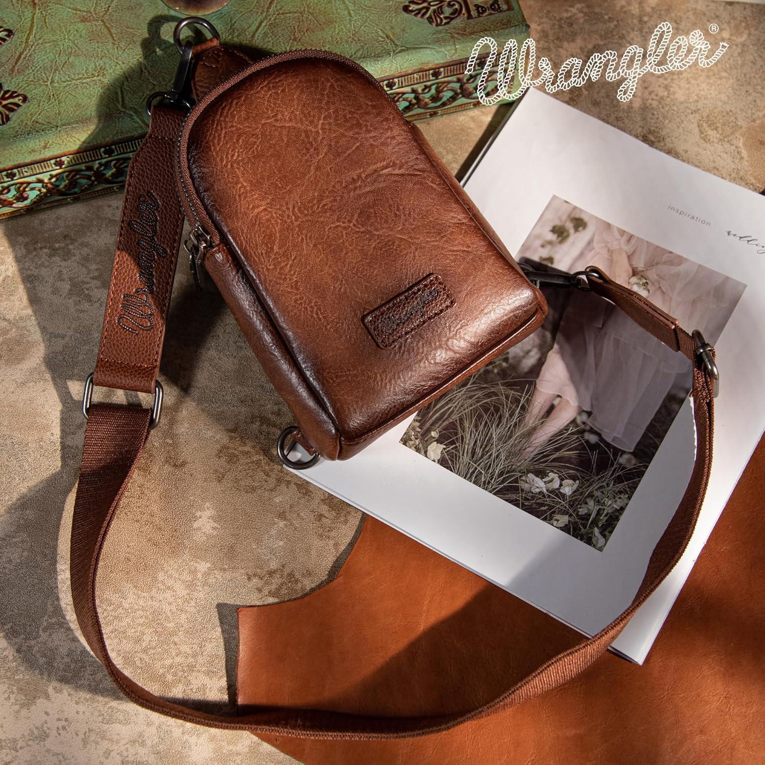 Wrangler Crossbody Sling Bag for Women Fanny Packs Chest Bags for Travel(Classic-dark Brown Distressed)