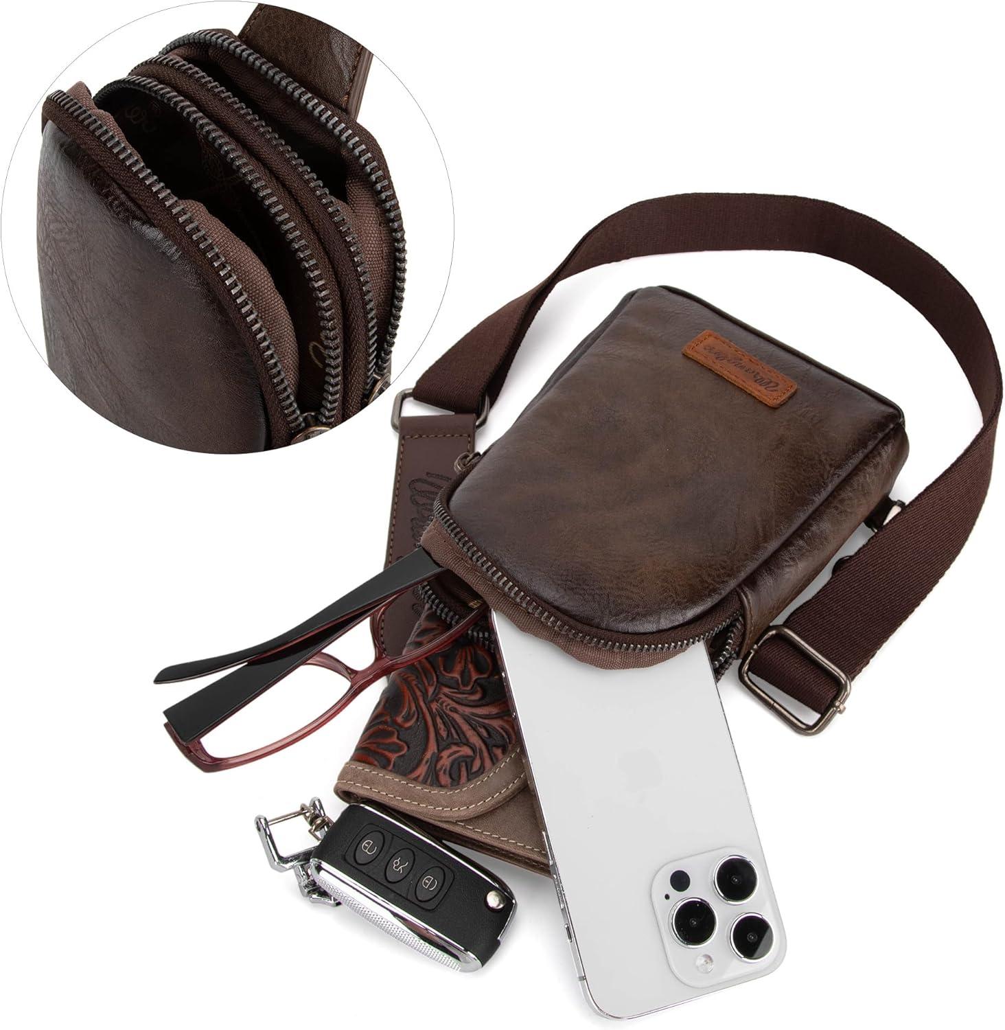 Wrangler Crossbody Sling Bag for Women Fanny Packs Chest Bags for Travel(Classic-dark Coffee Distressed)